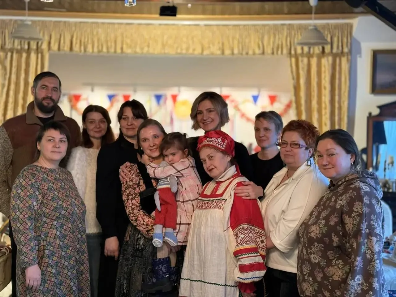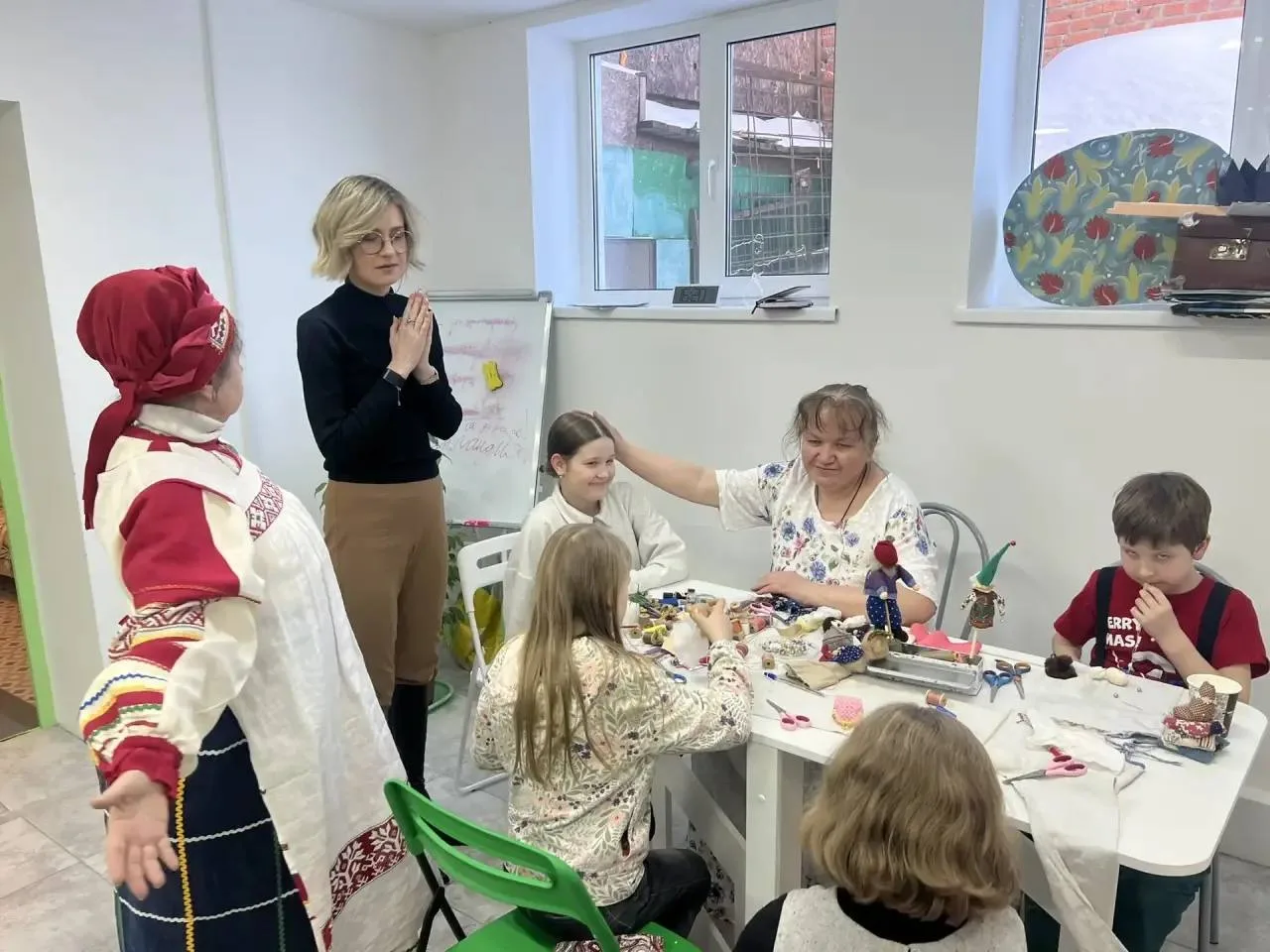 В честь масленичных гуляний в доме проходит небольшая ярмарка, на которой можно приобрести изделия ручной работы, например, куклы, прихватки, картины, бережно создаваемые многодетными мамами и их детьми.