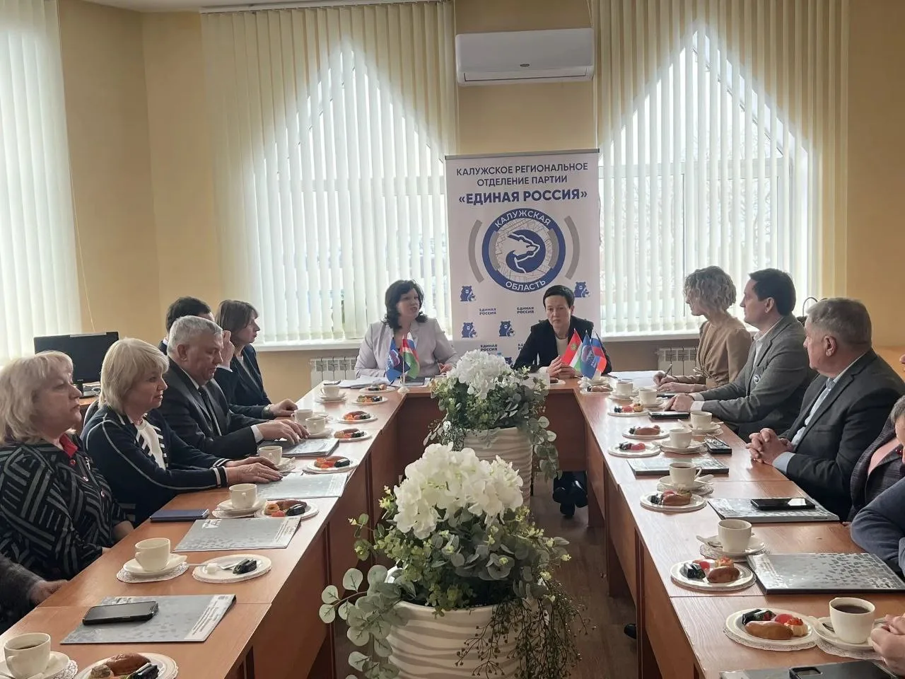 Благодарю за работу и содействие в проведении встречи начальника управления кадровой политики Администрации губернатора Калужской области Ирину Васильевну Замятину и руководителя регионального отделения фонда «Защитники Отечества», участника СВО Артура Вячеславовича Титова!