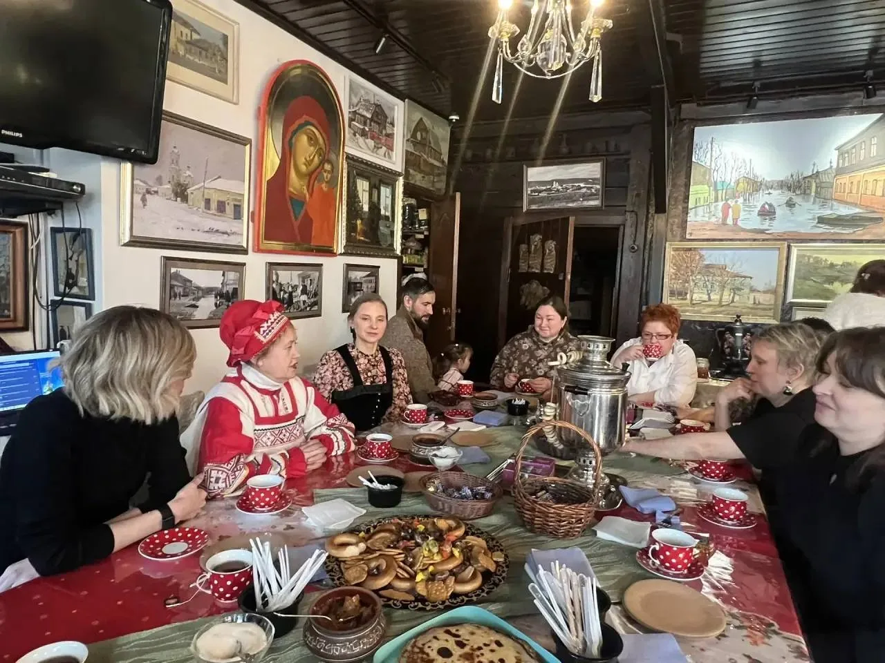 Сегодня проходят «Золовкины вечерки», на которых гостям предлагают петь частушки, водить хороводы, играть и угощаться вкусными блинами в сопровождении ароматного чая.