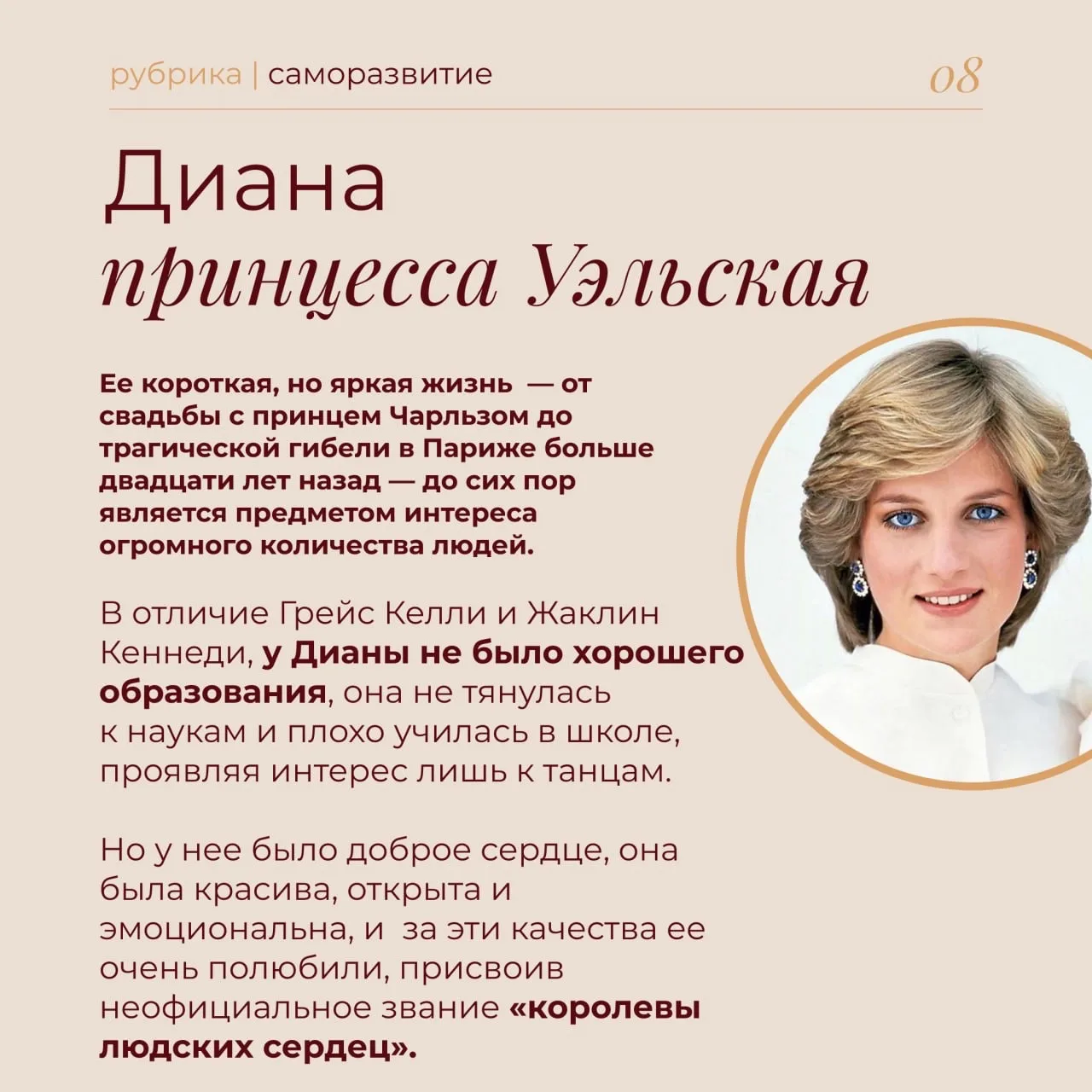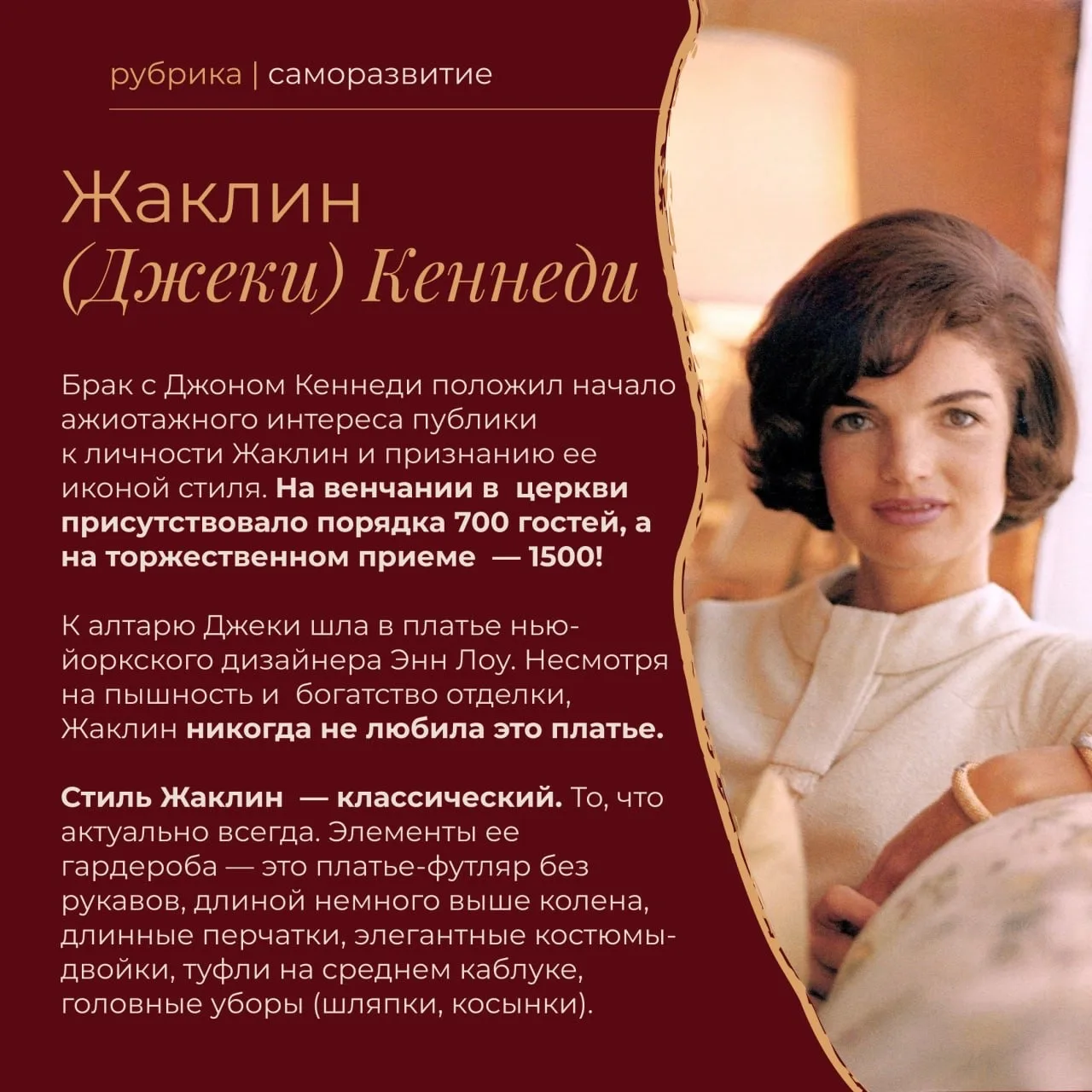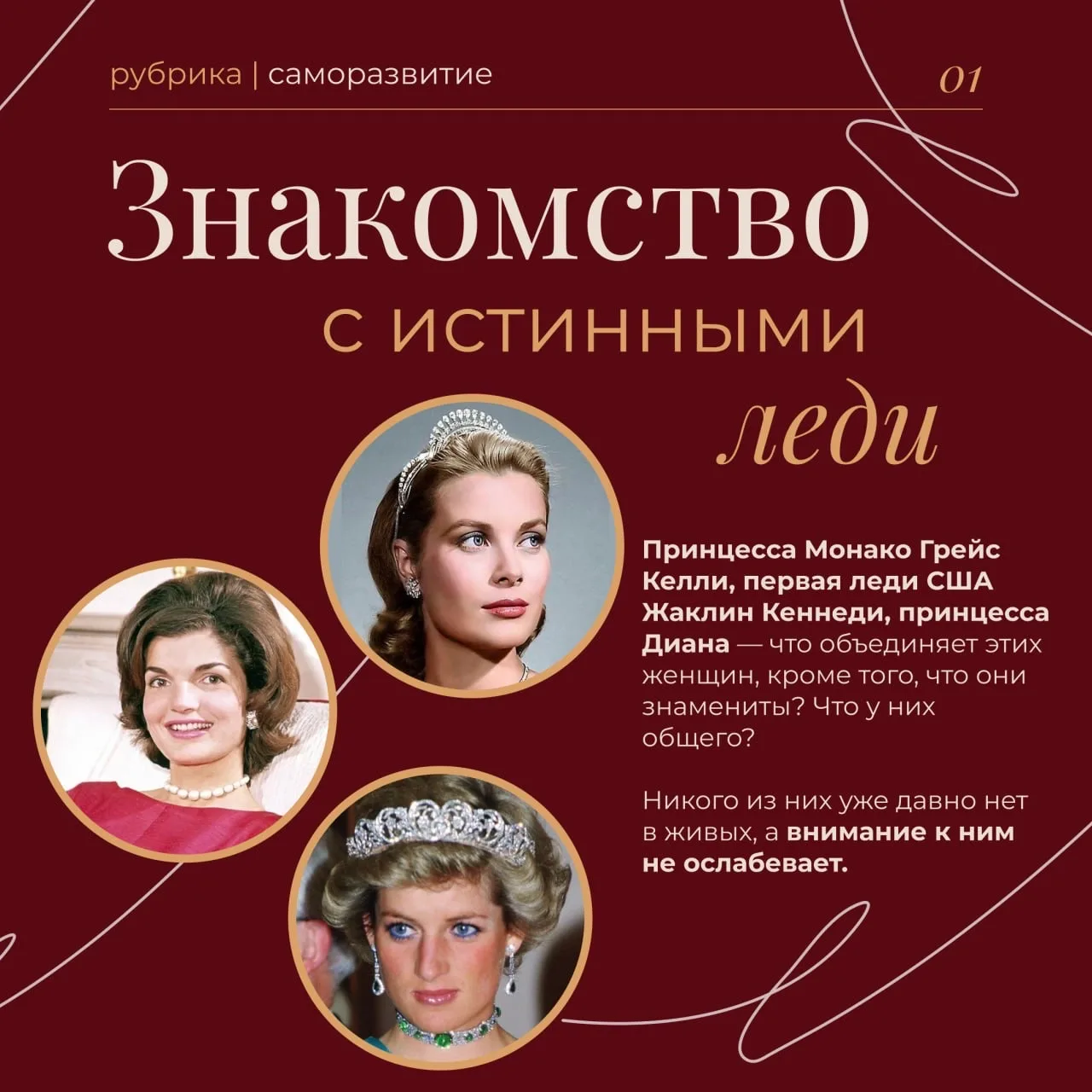 Я хочу предложить вам небольшой исторический экскурс и познакомить вас с истинными леди, за которыми прочно закрепилось звание «икона стиля». Принцесса Монако Грейс Келли, первая леди США Жаклин Кеннеди, принцесса Диана — что объединяет этих женщин, кроме того, что они знамениты? 🫅🏼