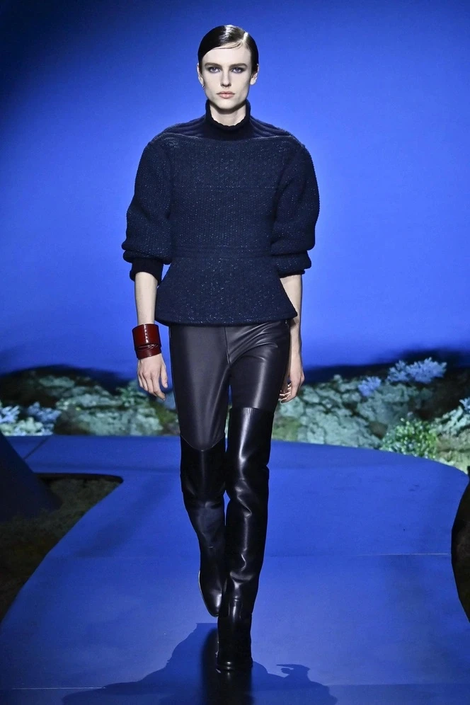 Они вернулись так тихо, что мы почти пропустили этот момент, и первыми все поняли Hermès. Дом, который традиционно отвечает за сумки и кожу, вдруг устраивает показ в пространстве, где свет застревает между днем и ночью, а воздух пахнет лесом: приглушенный синий свет, лунный портал и зеленый мох, по которому идут гости.