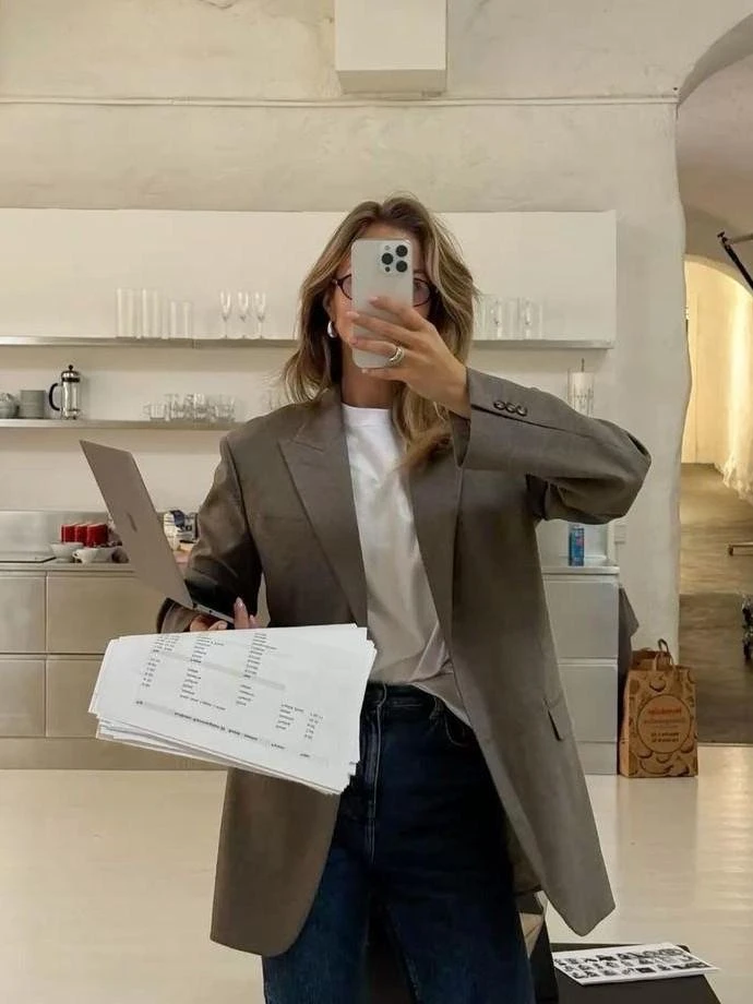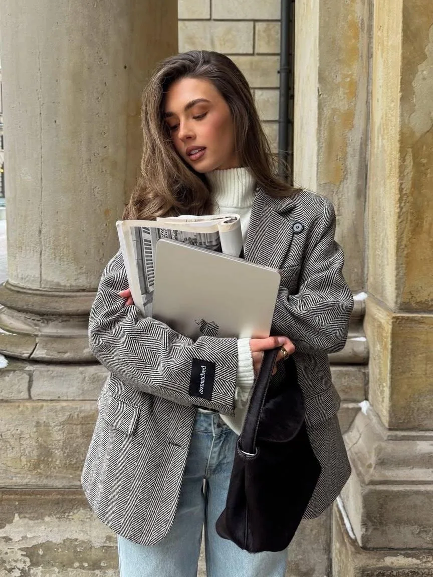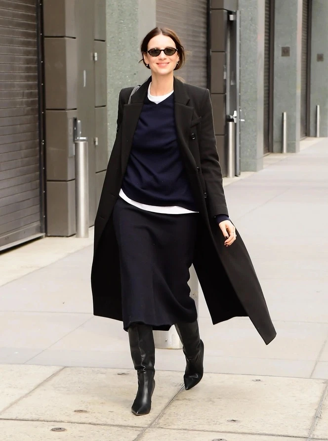 Сместите оттенок на полтона темнее: не бежевый, а табачный, не синий, а цвет ночного неба, не черный, а графит. Добавьте игру фактур: замша + кожа, шерсть + шелк. Или один акцент, например, сумка цвета мокрого асфальта.
