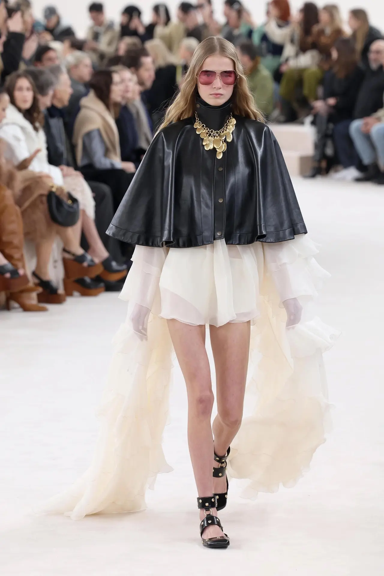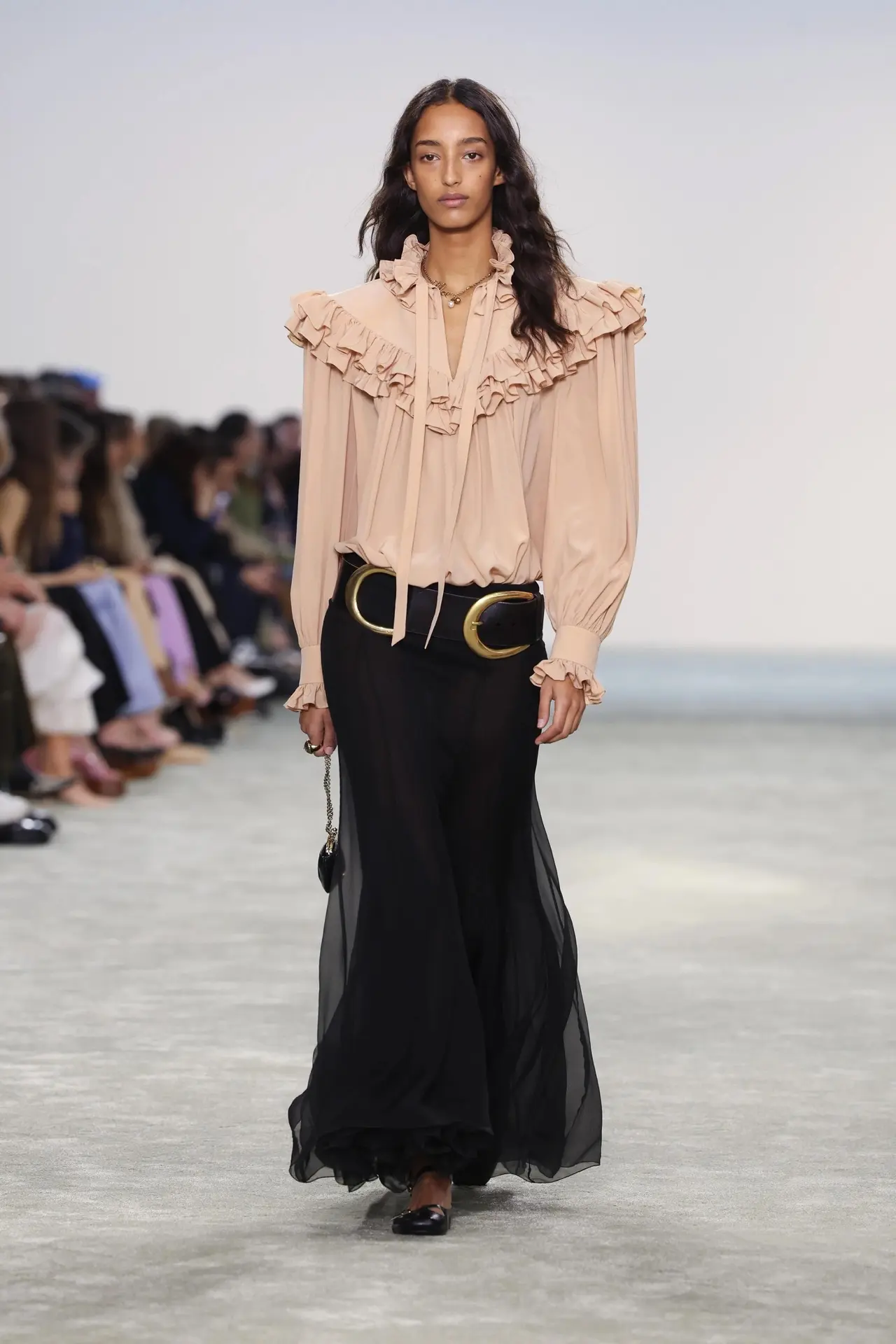 Чемена начинала с должности секретаря в Chloé, работала на самых младших позициях, ксерила фотографии Лорен Хаттон и Джейн Биркин, наблюдала за уверенными женщинами в студии и влюблялась в дух свободной феминности 70-х. Затем были годы в Saint Laurent у Ваккарелло, но по сути все это время она просто собирала собственный язык, чтобы в 2023-м наконец вернуться в Chloé уже как креативный директор.