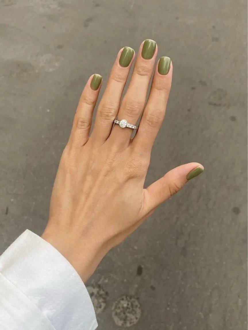 Приглушенный, слегка сероватый оливковый — идеальный компромисс между нюдом и цветом. Дает мягкий контраст с кожей, а граница при отрастании не выглядит резкой. На овале или мягком квадрате — особенно хорош!