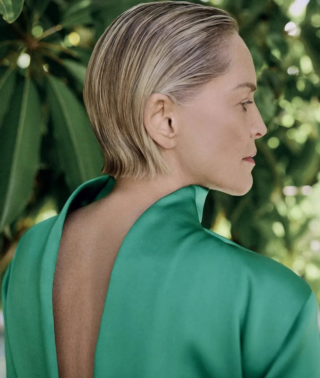 Она выбрала для съёмок изумрудное платье от Galvan с интересным верхом. Как вам рождественский образ?