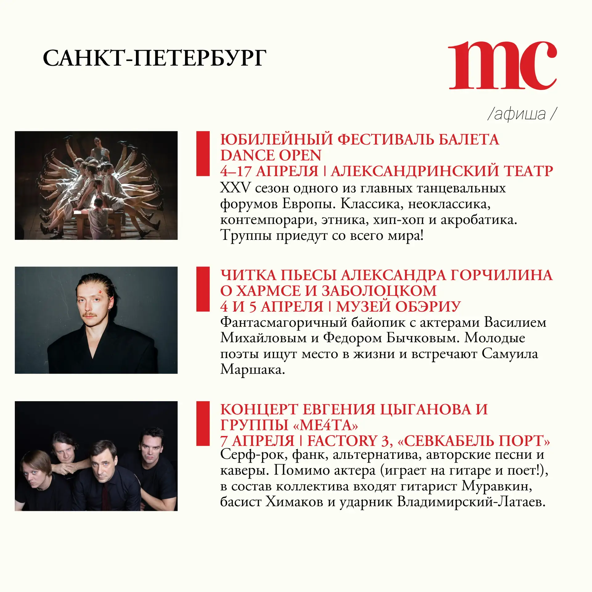 Собрали очередную порцию событий в разных уголках России — от камерных знакомств через искусство до юбилейного фестиваля балета и мистической премьеры с Никитой Ефремовым.
