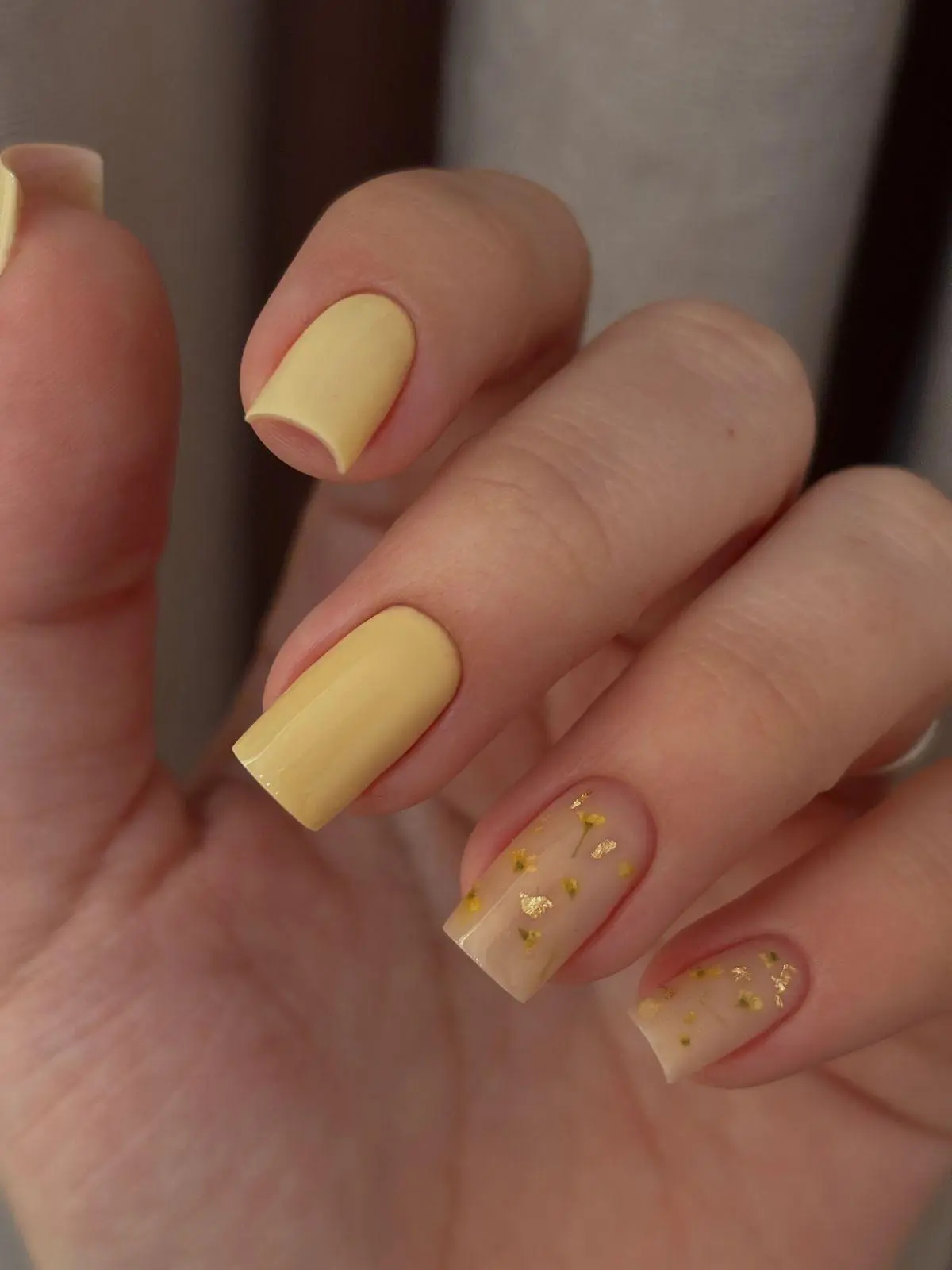 Мягкий маслянисто-желтый, близкий к пастели. На короткой и средней длине смотрится аккуратно, в офис не стыдно, а отросшая часть не бросается в глаза.
