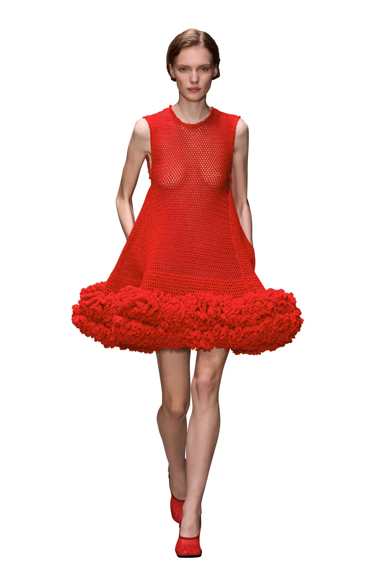 Каждая ее коллекция начинается с одной находки: старого топа с необычной кокеткой, винтажной рубашки, кружевного рукава с ярмарки. Она не копирует, а вытягивает историю и переносит в новые модели. Именно поэтому на Met Gala в ее платьях выходят Сиенна Миллер, Грета Гервиг и Зои Салдана, и это не кутюрные монстры, а естественное продолжение того, что она показывает на подиуме.