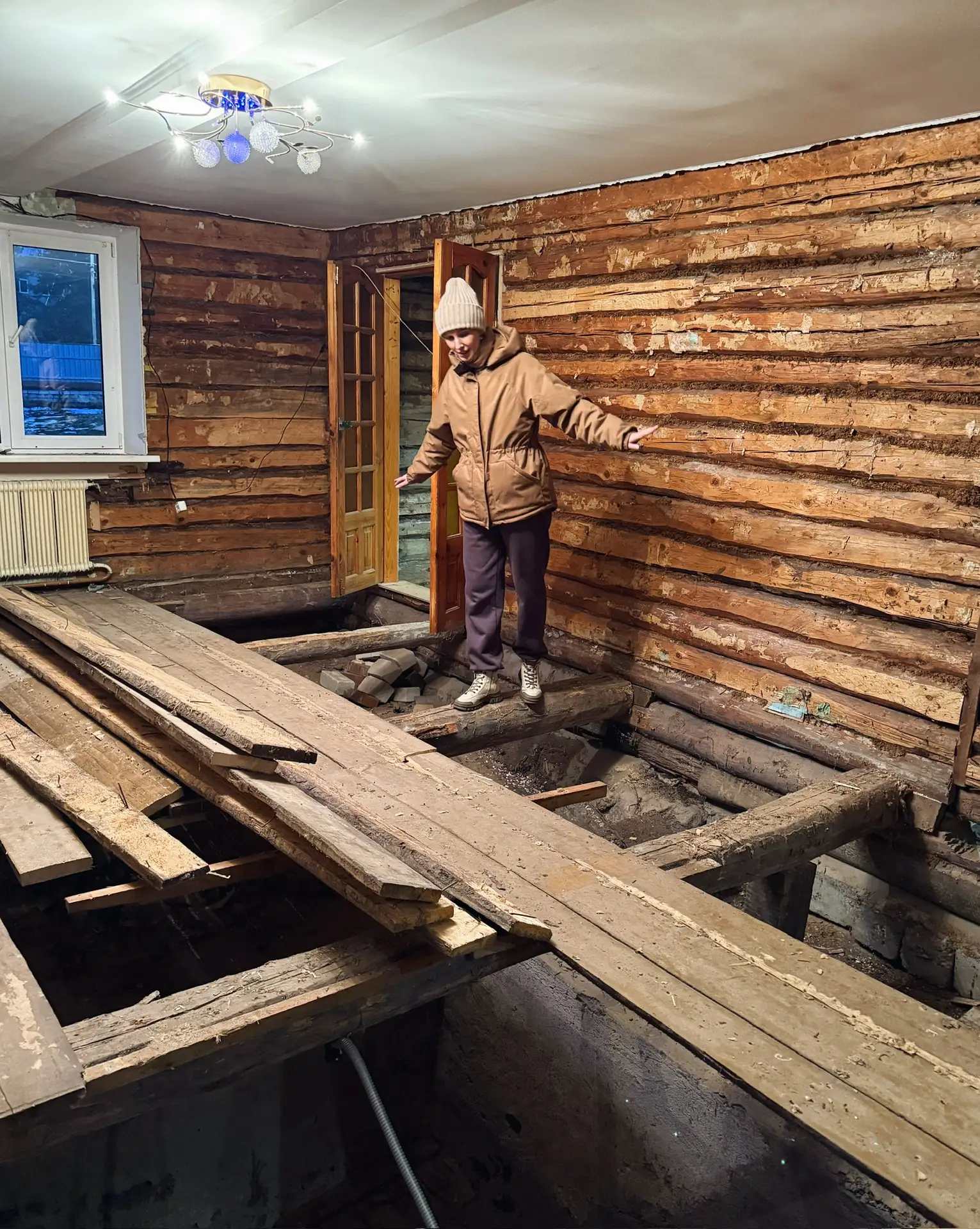 Купили в начале октября. И уже навели шороху внутри и местами снаружи: в части дома разобрали полы с целью замены и выравнивания; вскрыты стены - чтобы создать новые, ровные. До потолка скорее всего тоже доберемся.