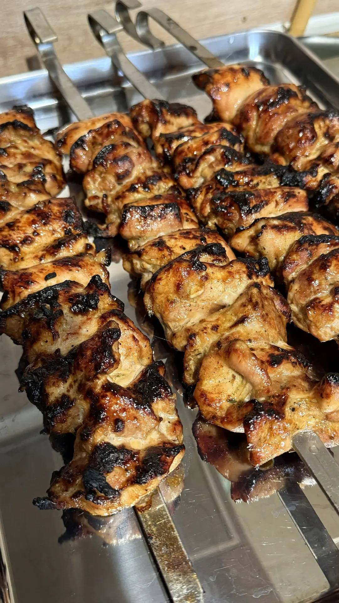 Держать в маринаде от 2х часов. Примерно 25 минут готовить на углях.