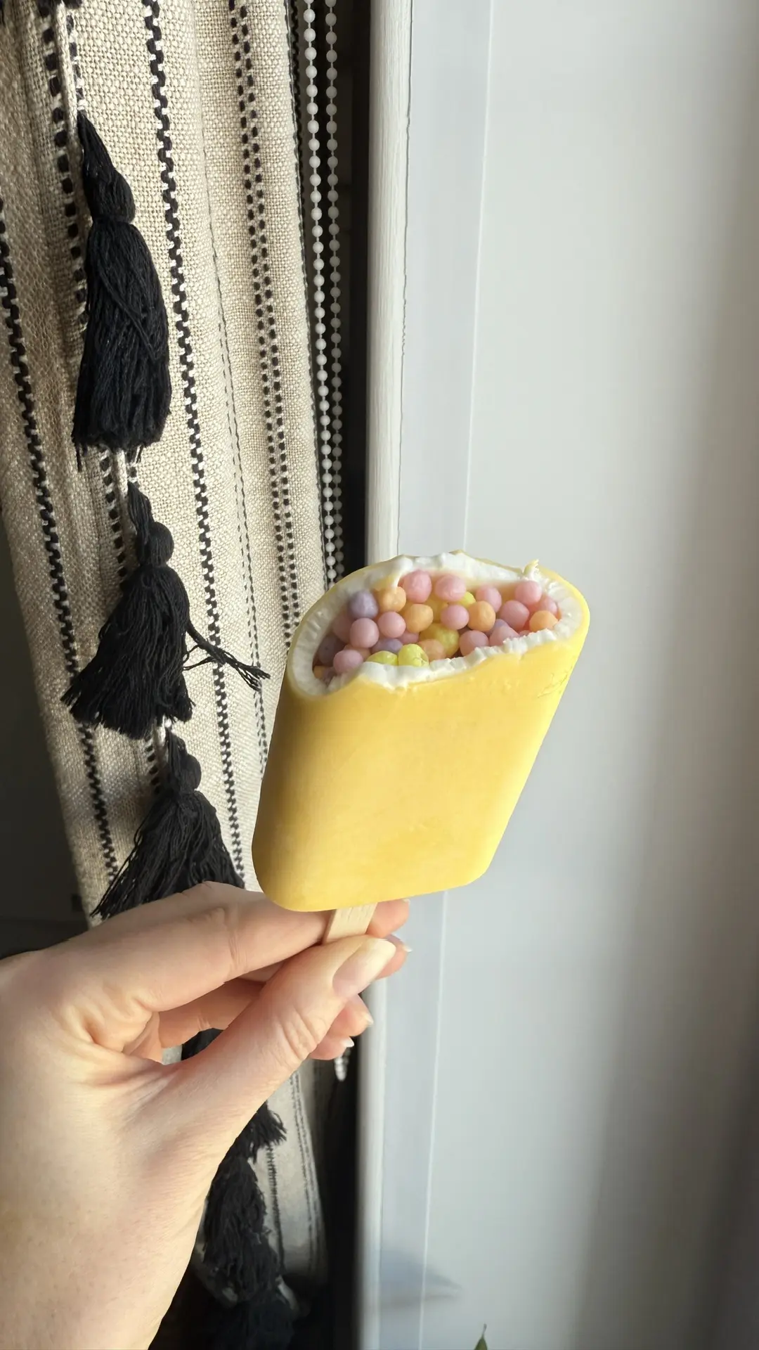 Летом никак не удавалось его поймать, а тут случайно в кб увидела. Думала, что это маленькие шарики мороженого внутри будут, а это типа кукурузных хлопьев. И то только наполовину мороженого) Но красиво, согласна.