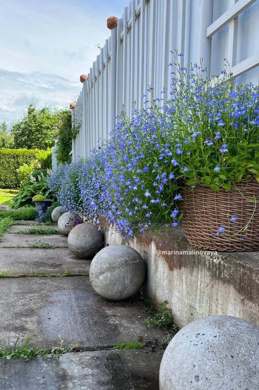 Из декора в саду ещё люблю бетонные шары. Просто бетонные шары разного размера. Делали их тоже сами уже несколько лет назад. Лежат здесь всесезонно. Некоторые предлагают их покрасить или вцелом не понимают, зачем они. А для меня они - изюминка.