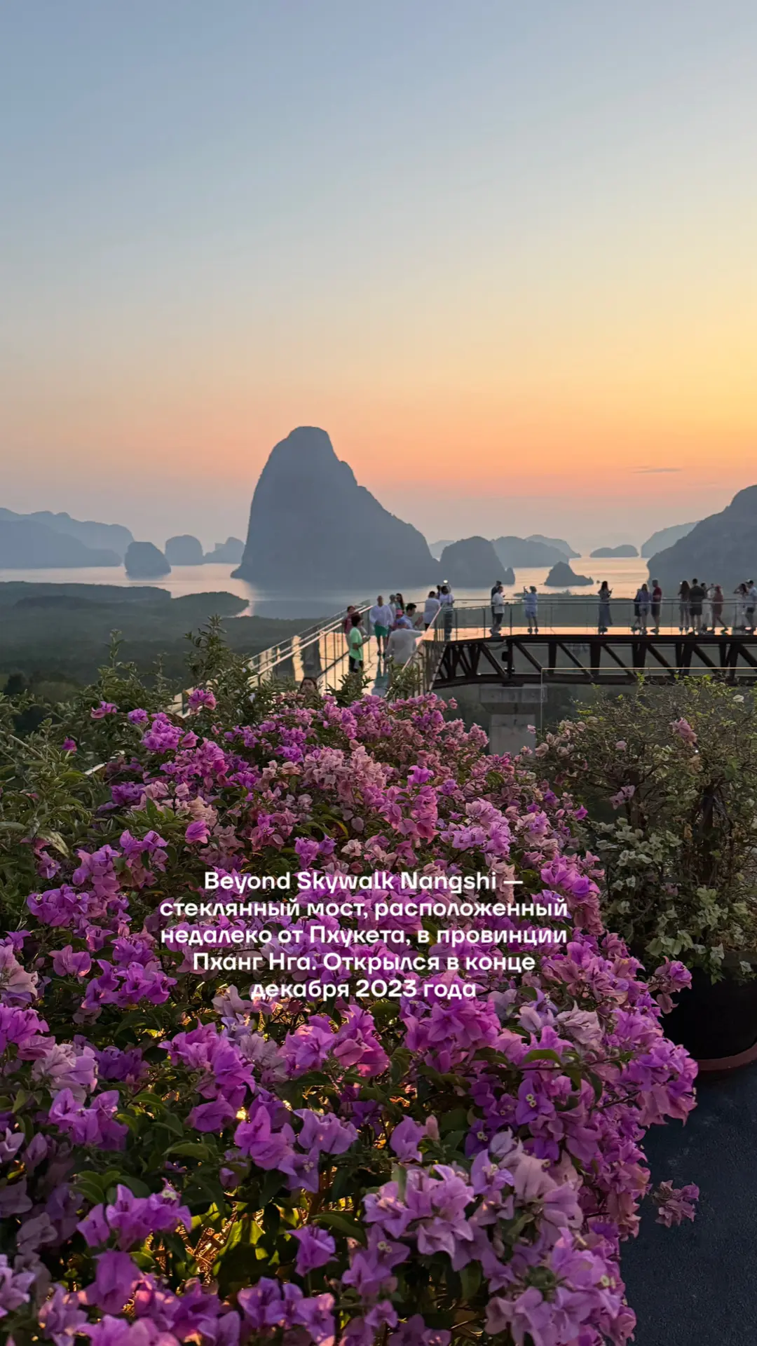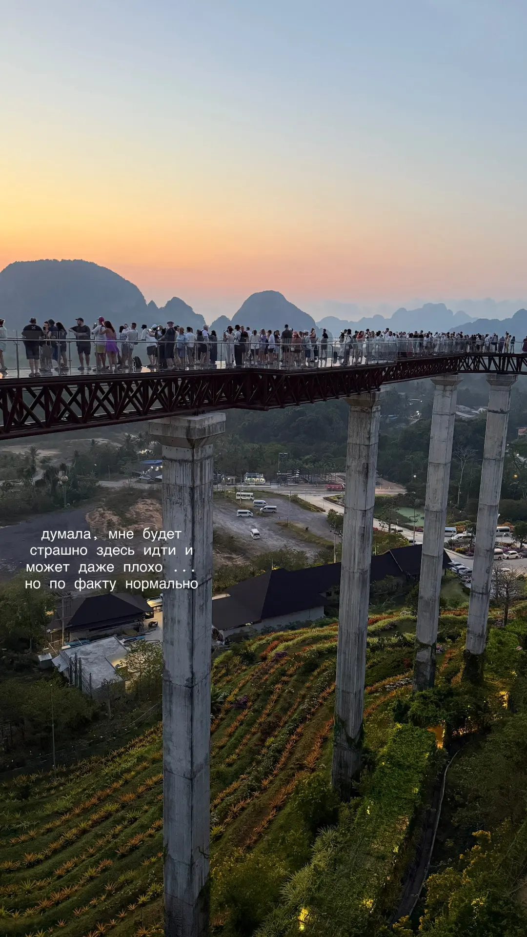 На днях ездили в провинцию Пханг Нга (брали организованную поездку). Встать надо было в 3 ночи. Рассвет встречали на стеклянном мосту (открыт в декабре 2023 года). Думала, не смогу по нему идти: высоты боюсь, а тут ещё и прозрачный пол🫠 Но в итоге оказалось нормально. Красиво очень!