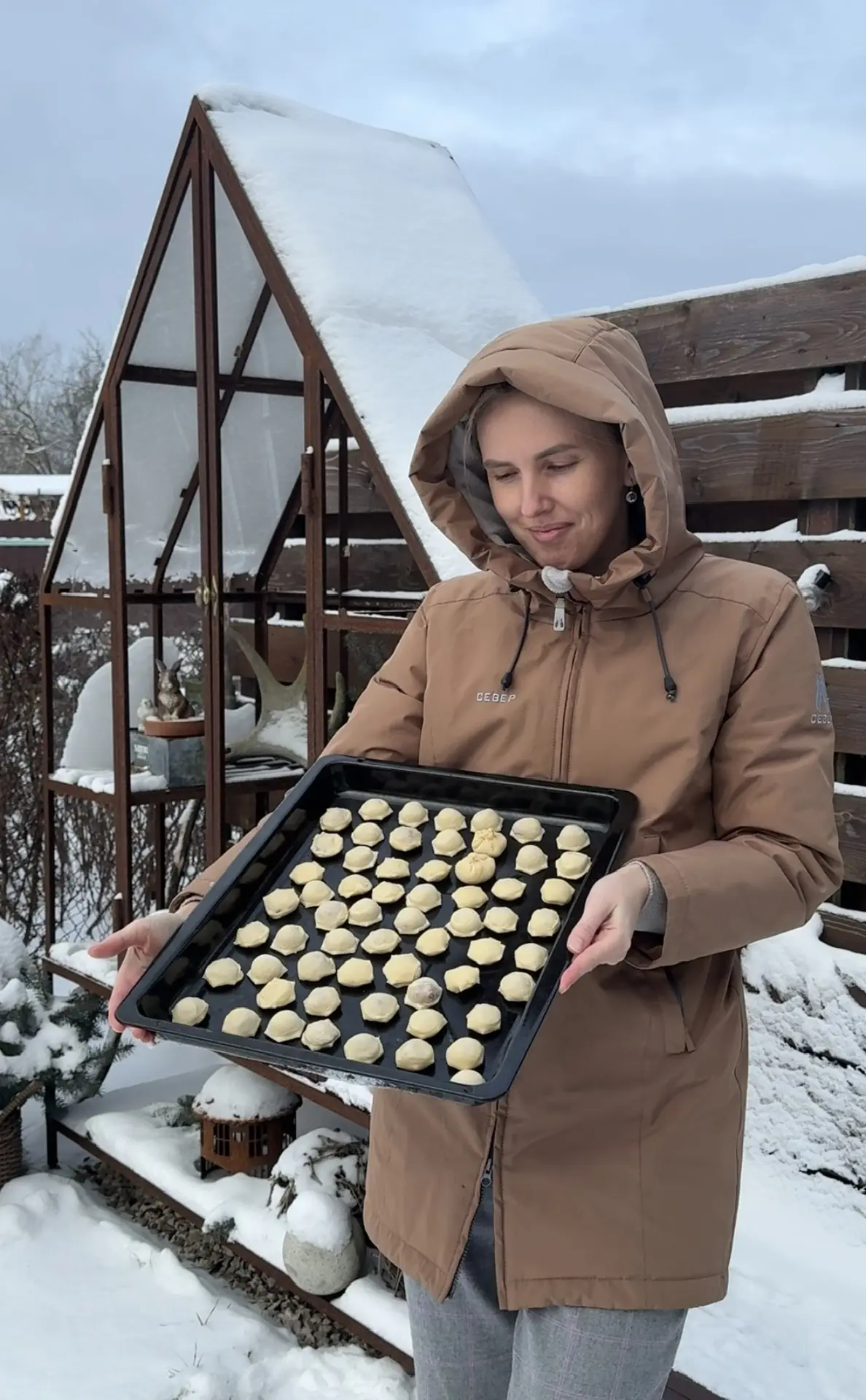 В теплицу давно не заглядывала. И снег с нее не счищаю сейчас: с «капельки» он сам довольно неплохо скатывается. Показываю тут на видео, что внутри теплицы сейчас.