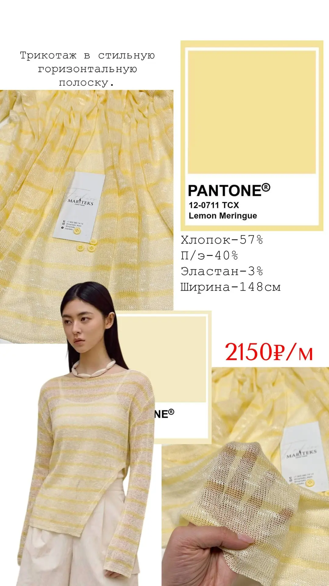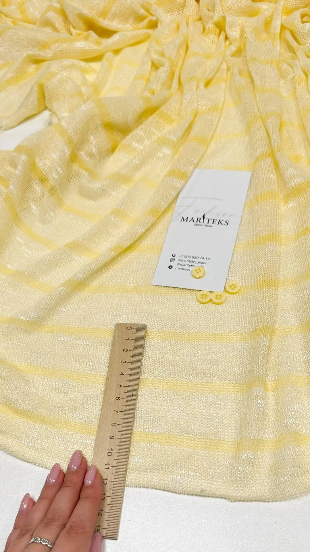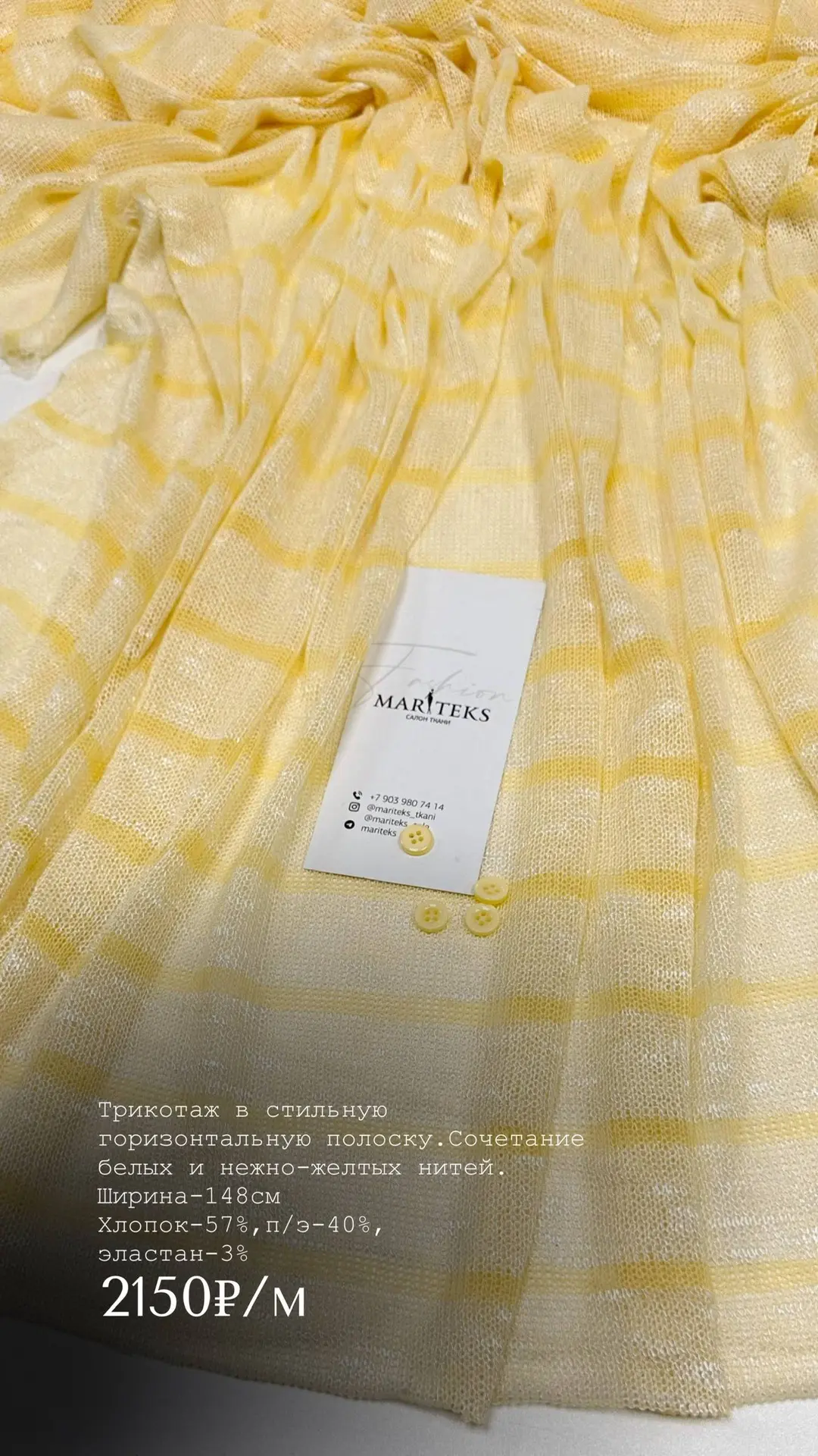 Трикотаж в стильную горизонтальную полоску. Сочетание белый и нежно-желтых нитей. Мягкий и очень комфортный тактильно. На платье, на лонгслив, на джемпер и на кардиган 🫶