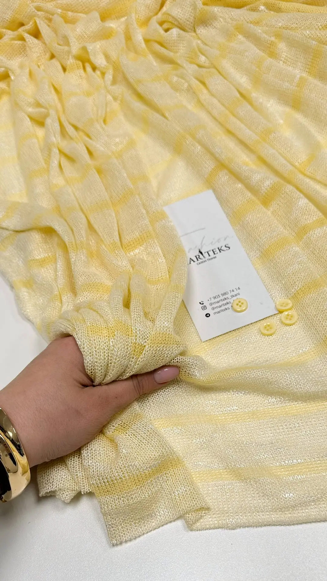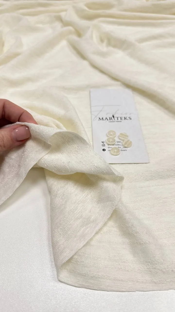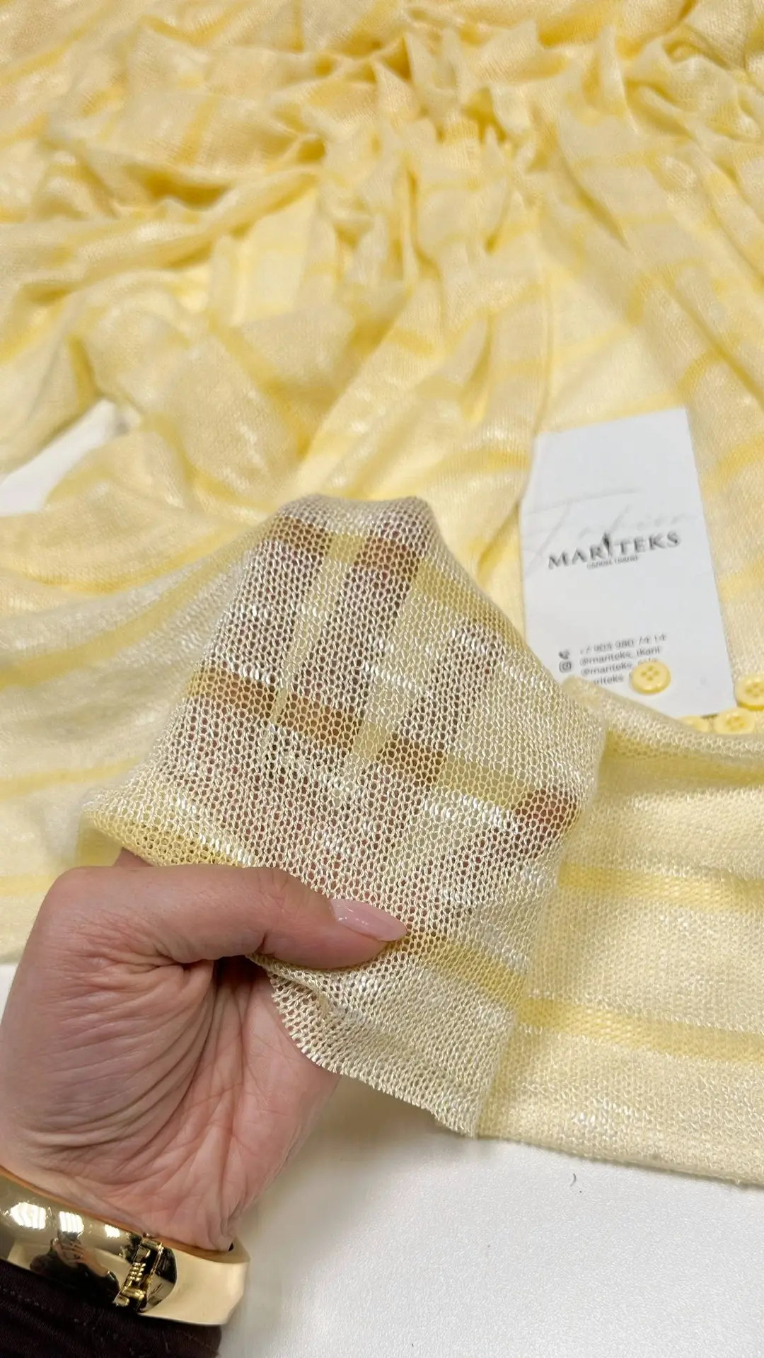 Трикотаж в стильную горизонтальную полоску. Сочетание белый и нежно-желтых нитей. Мягкий и очень комфортный тактильно. На платье, на лонгслив, на джемпер и на кардиган 🫶