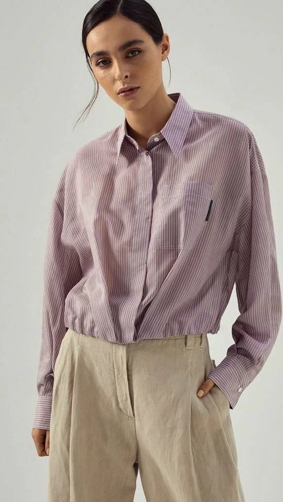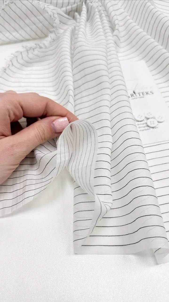 Легкий и воздушный батист Brunello Cucinelli в деликатную горизонтальную полоску. Идеален для легких летящих блузок, платьев или юбок 🔥