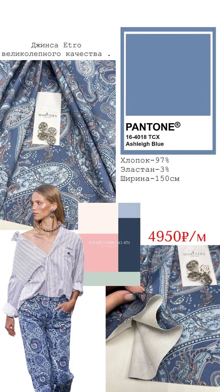 Костюмно-плательный хлопок под джинсу Etro. Тактильно словно кожа персика. На пиджак, на бомбер, на широкие брюки или на юбку 🔥