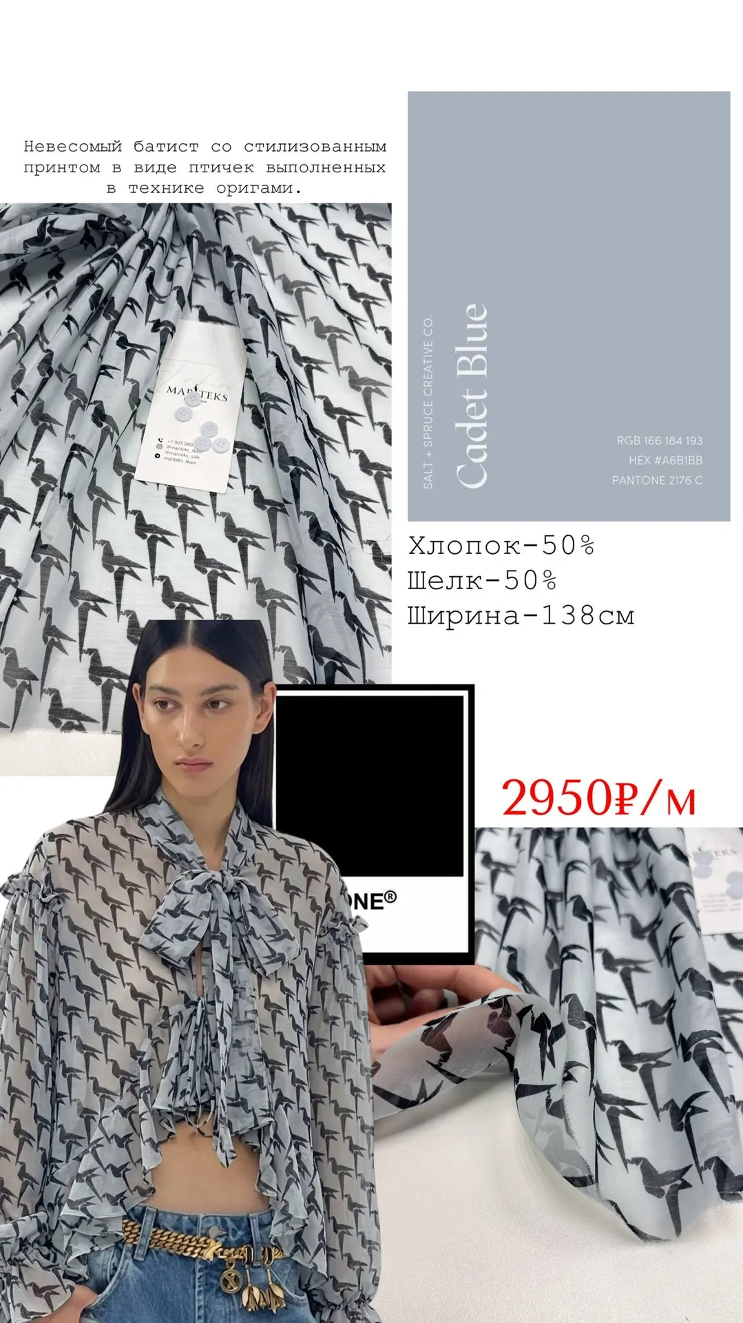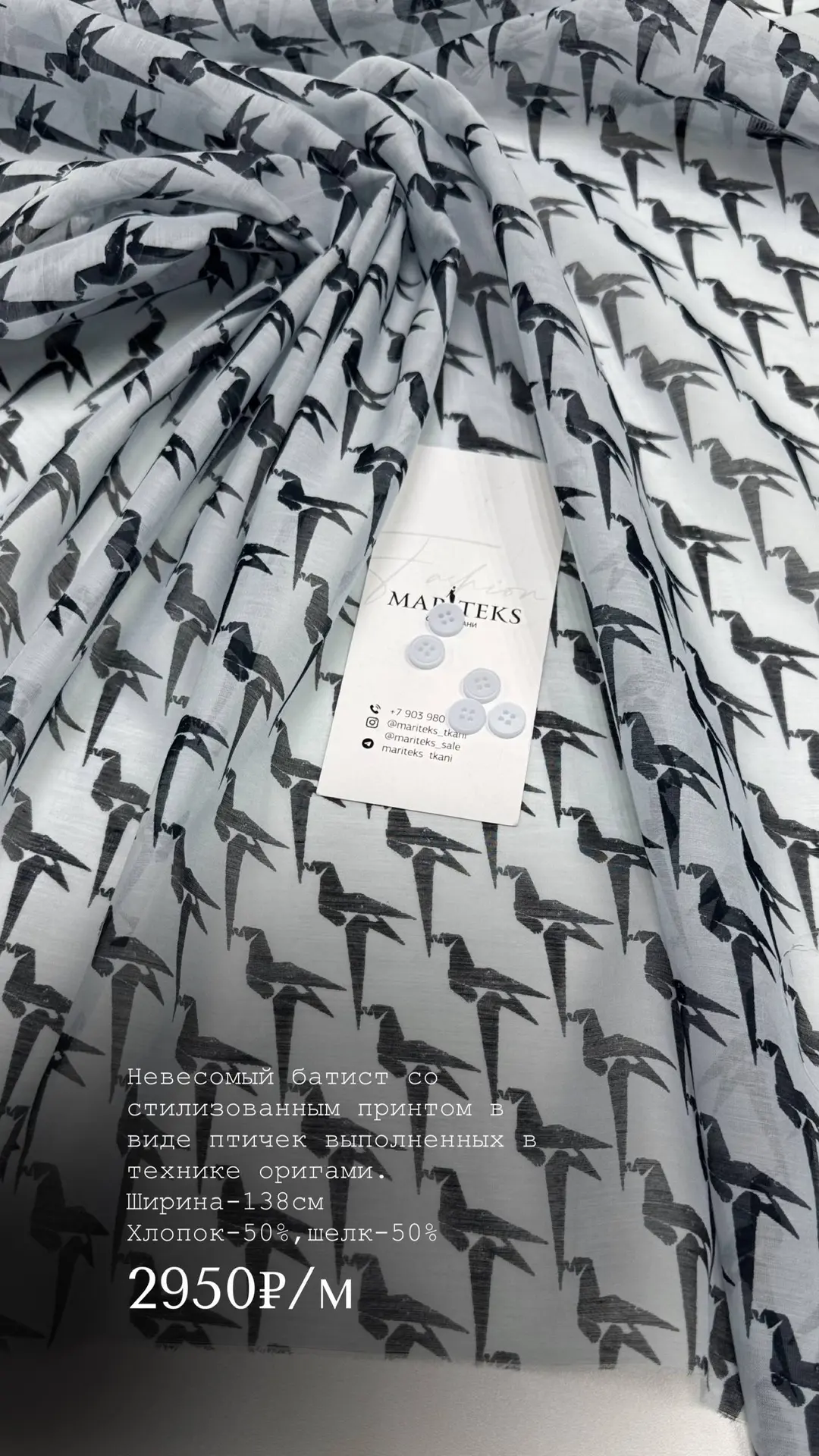 Невесомый батист со стилизованным принтом в виде птичек выполненных в технике оригами. На рубашку или на платье 🤩