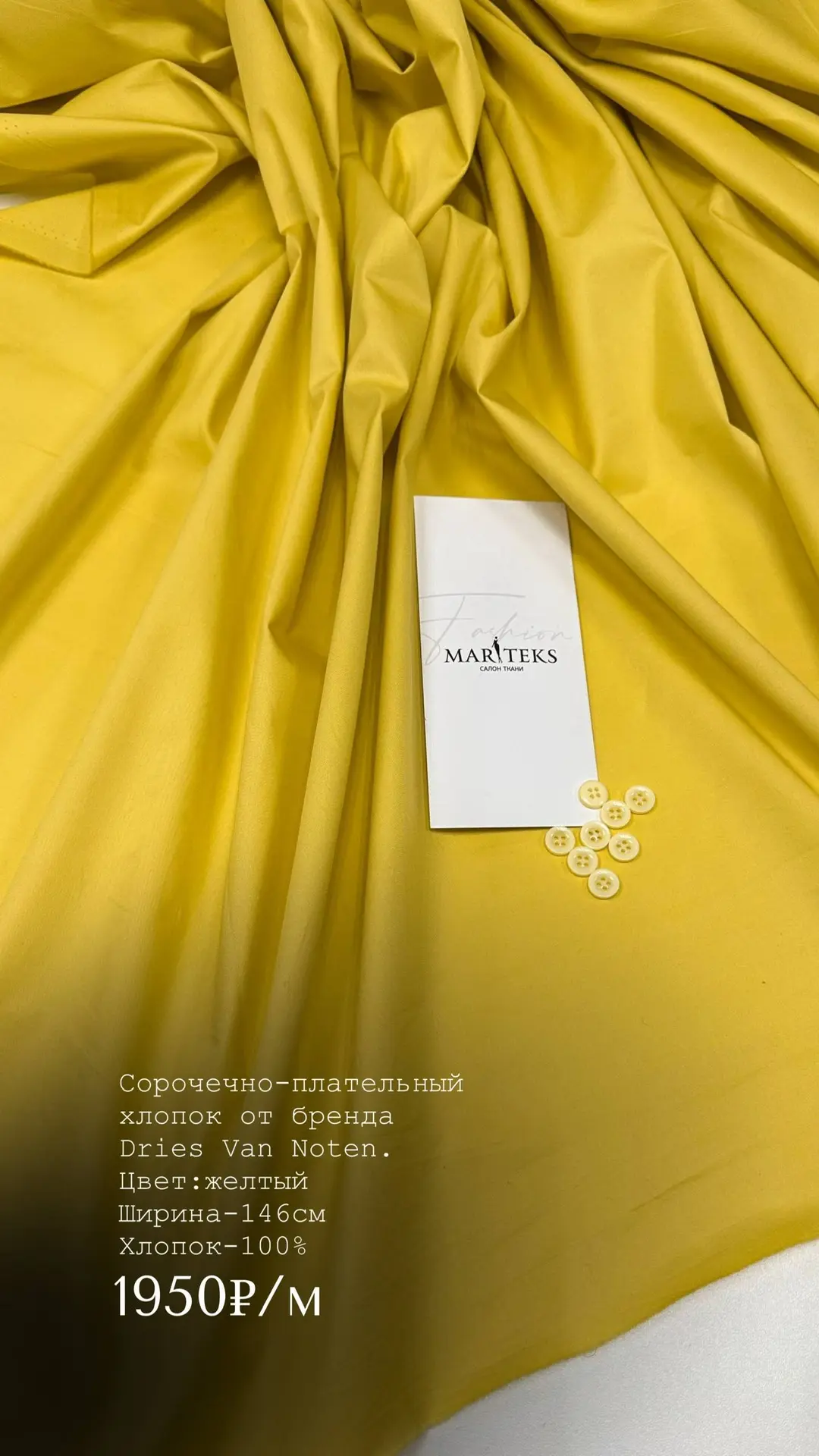 Сорочечно-плательный хлопок от бренда Dries Van Noten. Потрясающий оттенок словно распустившаяся весенняя мимоза. На платье, на сарафан, рубашку и шорты или юбку 🌼