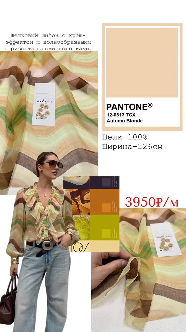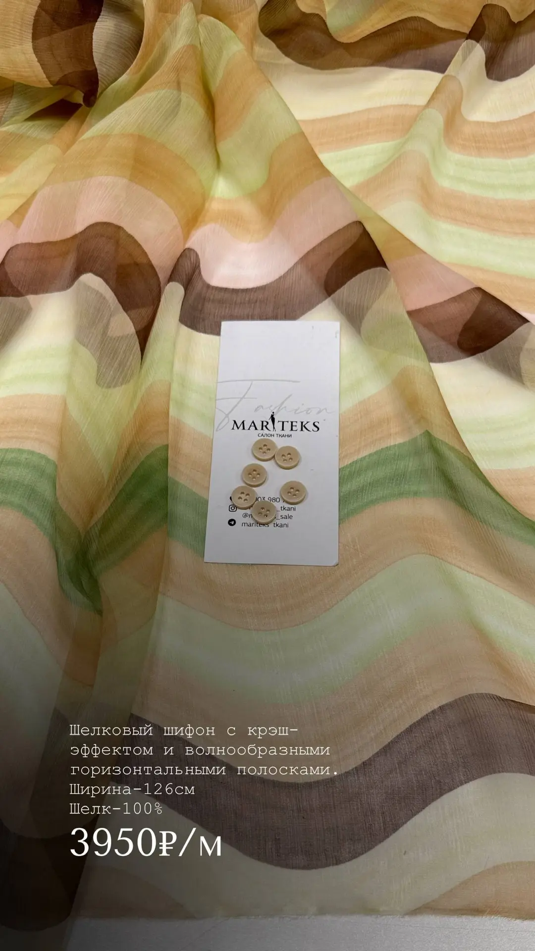 Шелковый шифон с крэш-эффектом и волнообразными горизонтальными полосками. На летящее платье, на блузку, на юбку 😍
