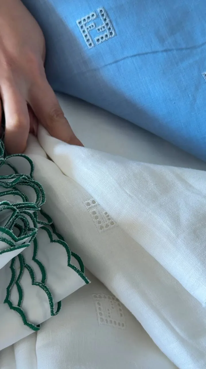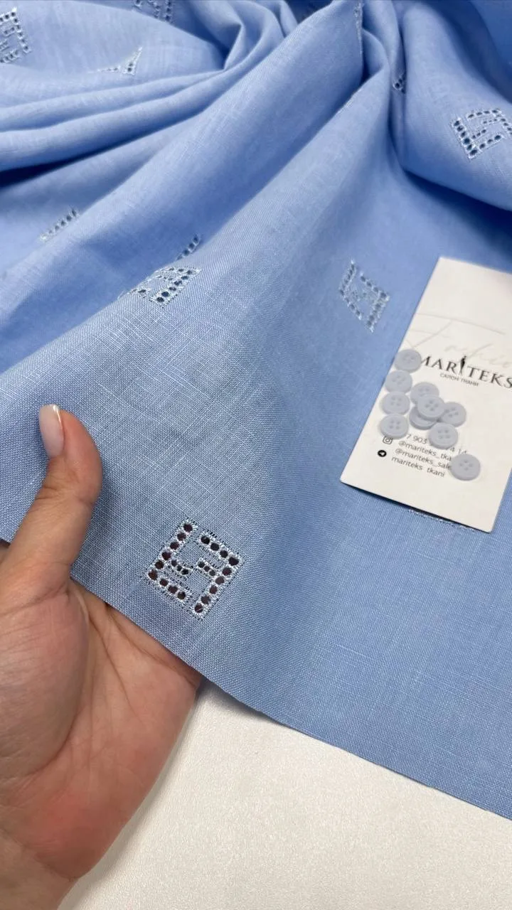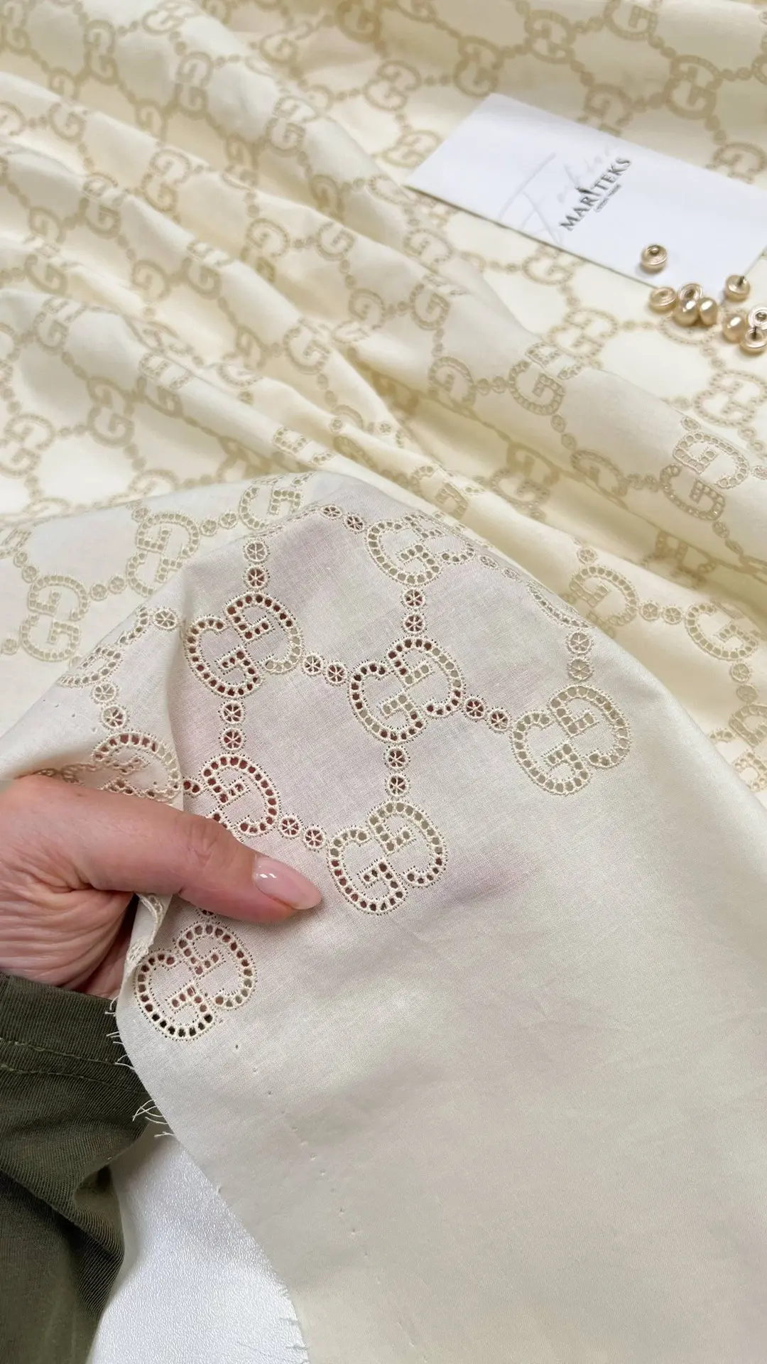 Лен с вышивкой монограммы бренда Fendi. Шикарный по качеству. Идеально на лето. На рубашку и шорты, на юбку или на сарафан 🫶