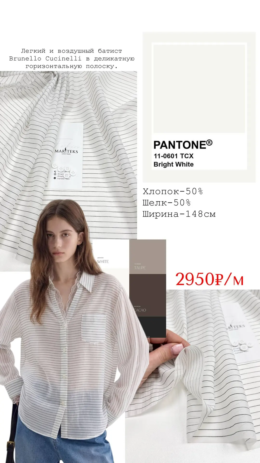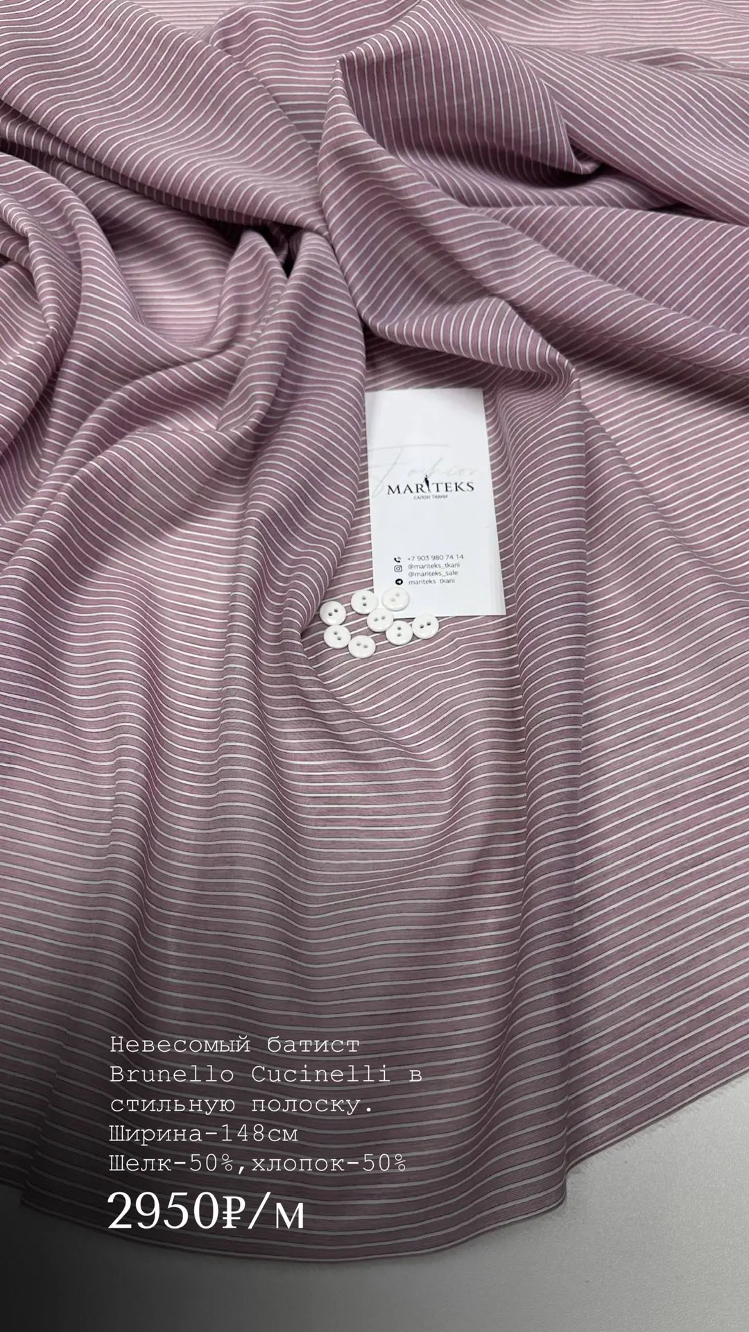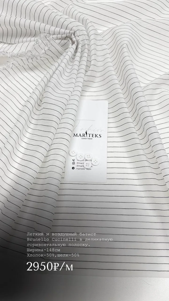 Невесомый батист Brunello Cucinelli в стильную полоску. Легкий и воздушный. На рубашку или на платье 🤩