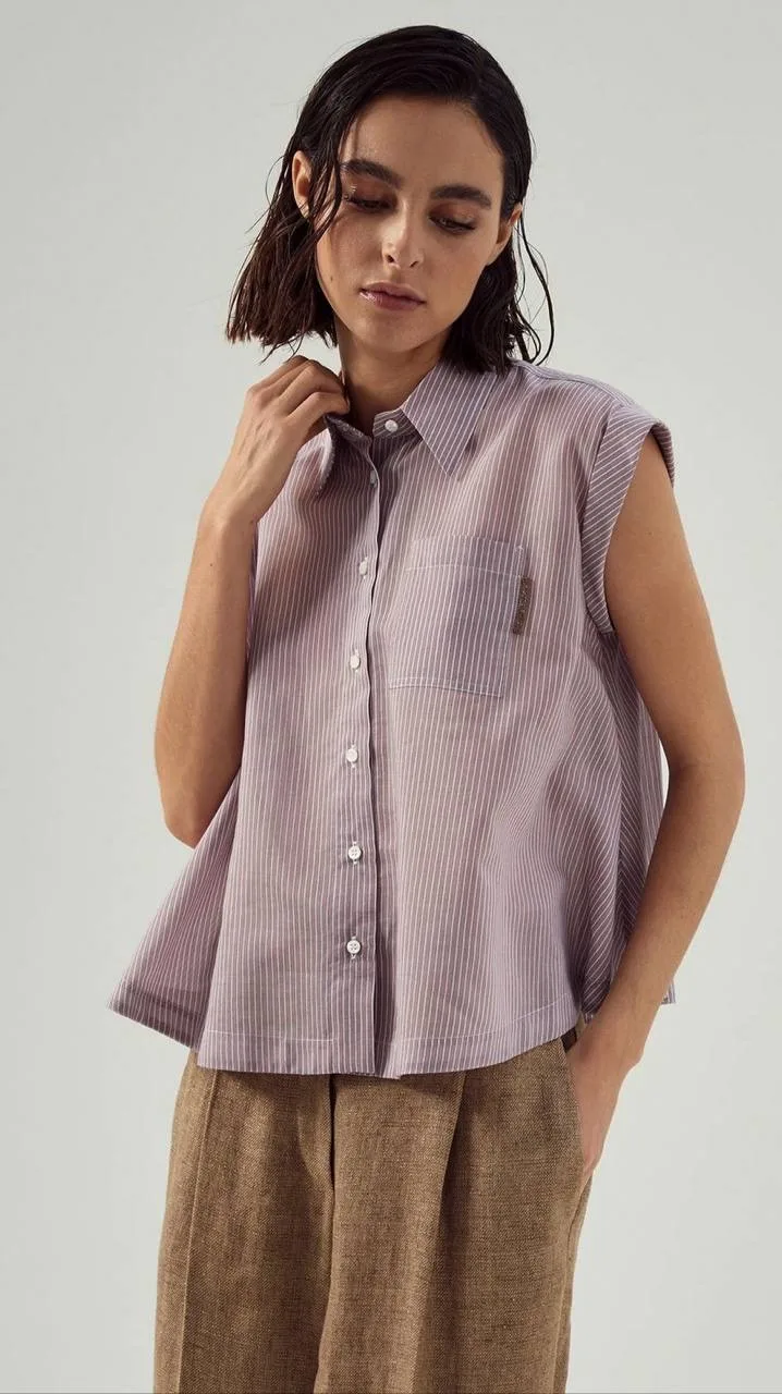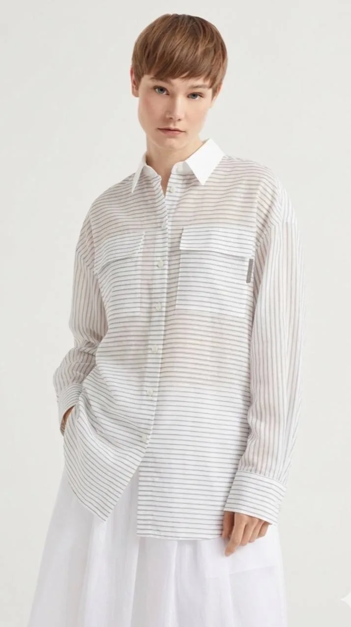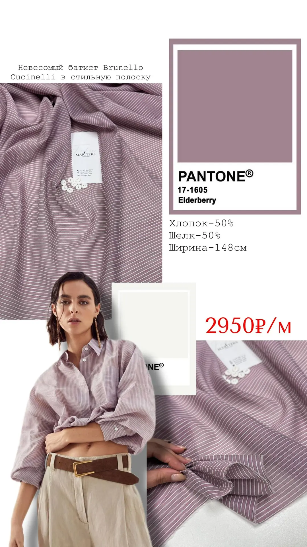Невесомый батист Brunello Cucinelli в стильную полоску. Легкий и воздушный. На рубашку или на платье 🤩