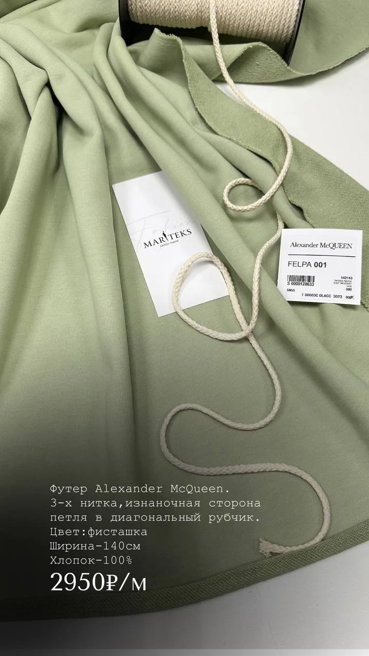 Футер Alexander McQueen. 3-х нитка, изнаночная сторона петля в диагональный рубчик. Идеально подходит на костюм, на платье, на свитшот и на худи 🤩