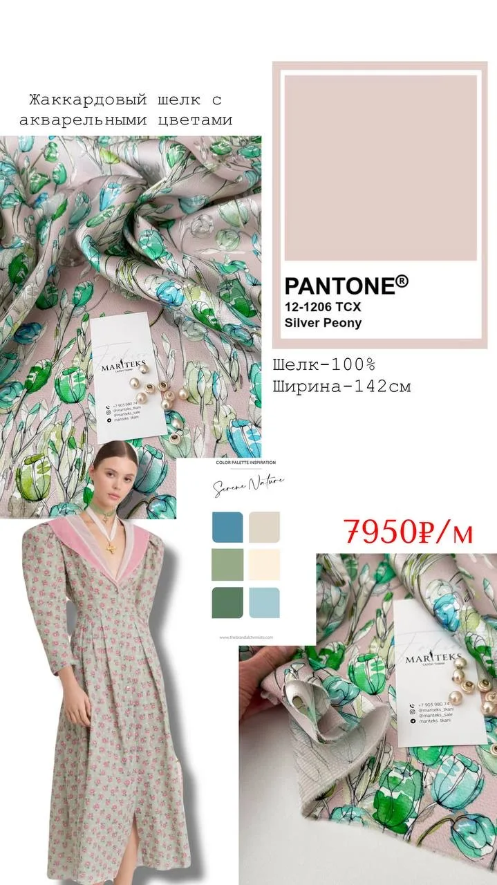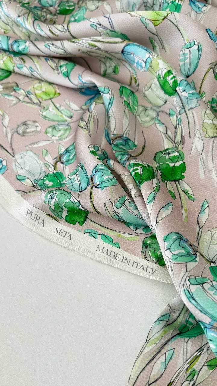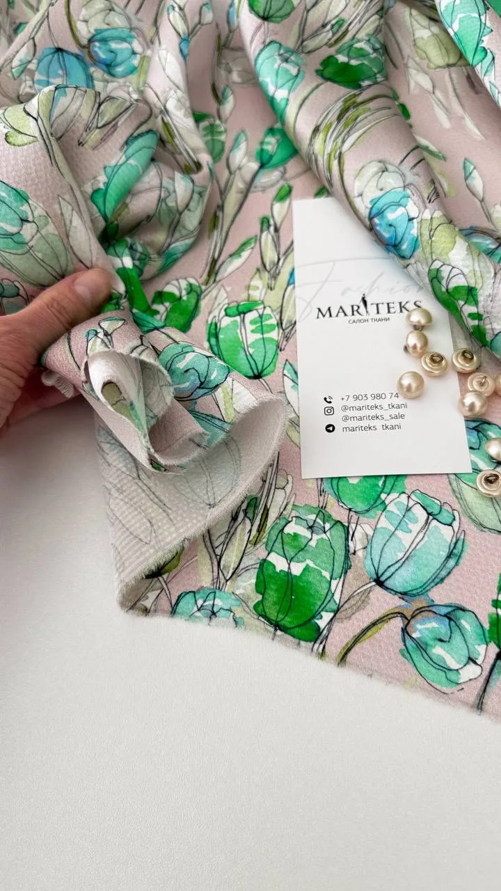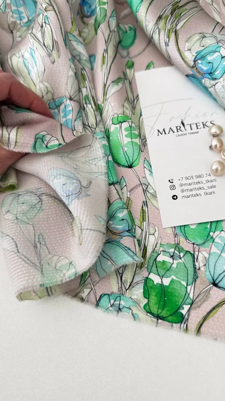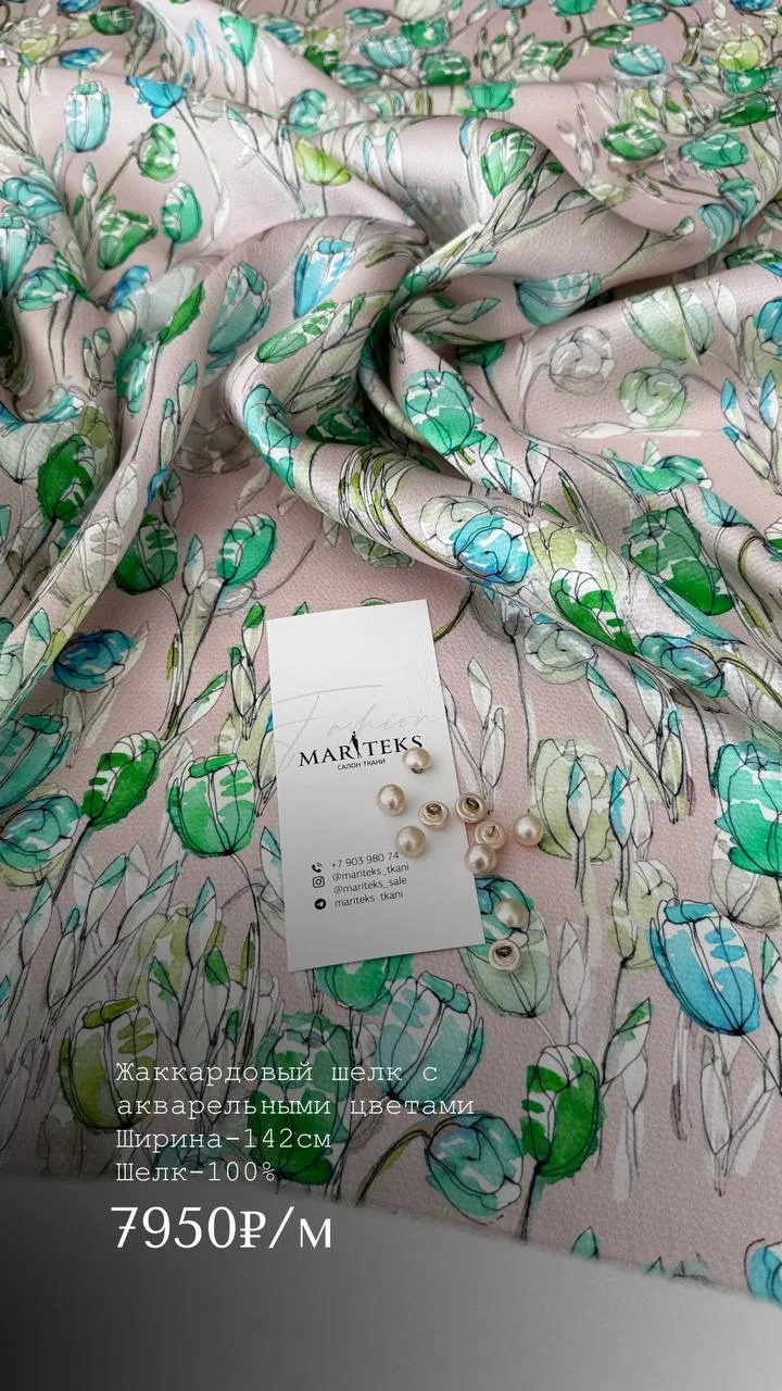 Жаккардовый шелк с акварельными цветами. Для нежных образов, на платье, на юбку или блузку 🌸