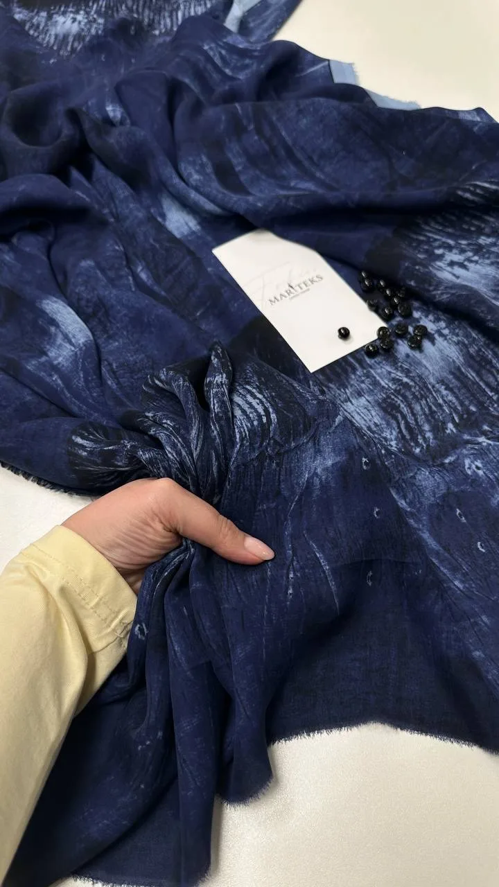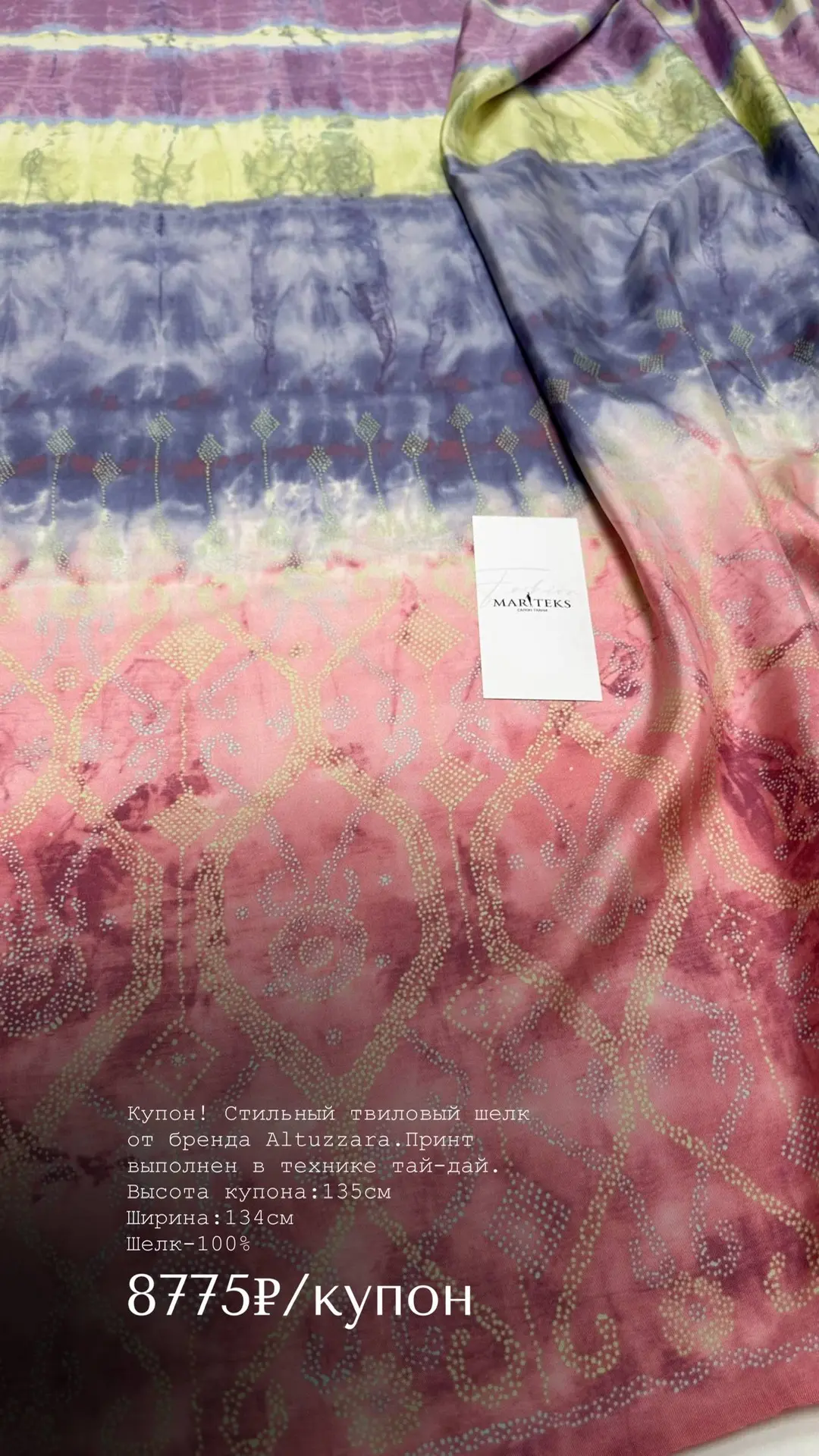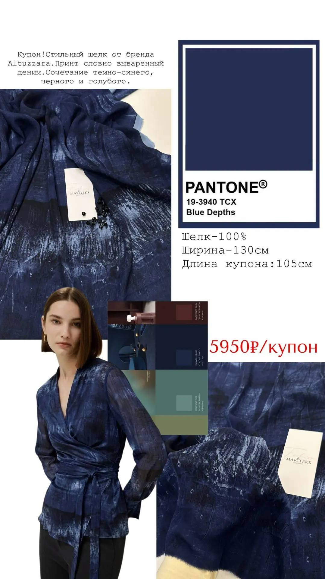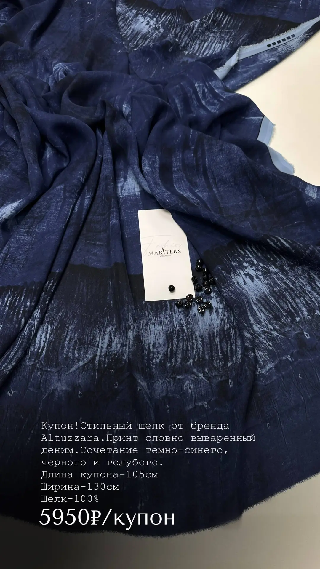 Купон! Стильный шелк от бренда Altuzzara. Принт словно вываренный деним. Сочетание темно-синего, черного и голубого. На платье, на юбку, на блузку или костюм туника и широкие брюки 😍