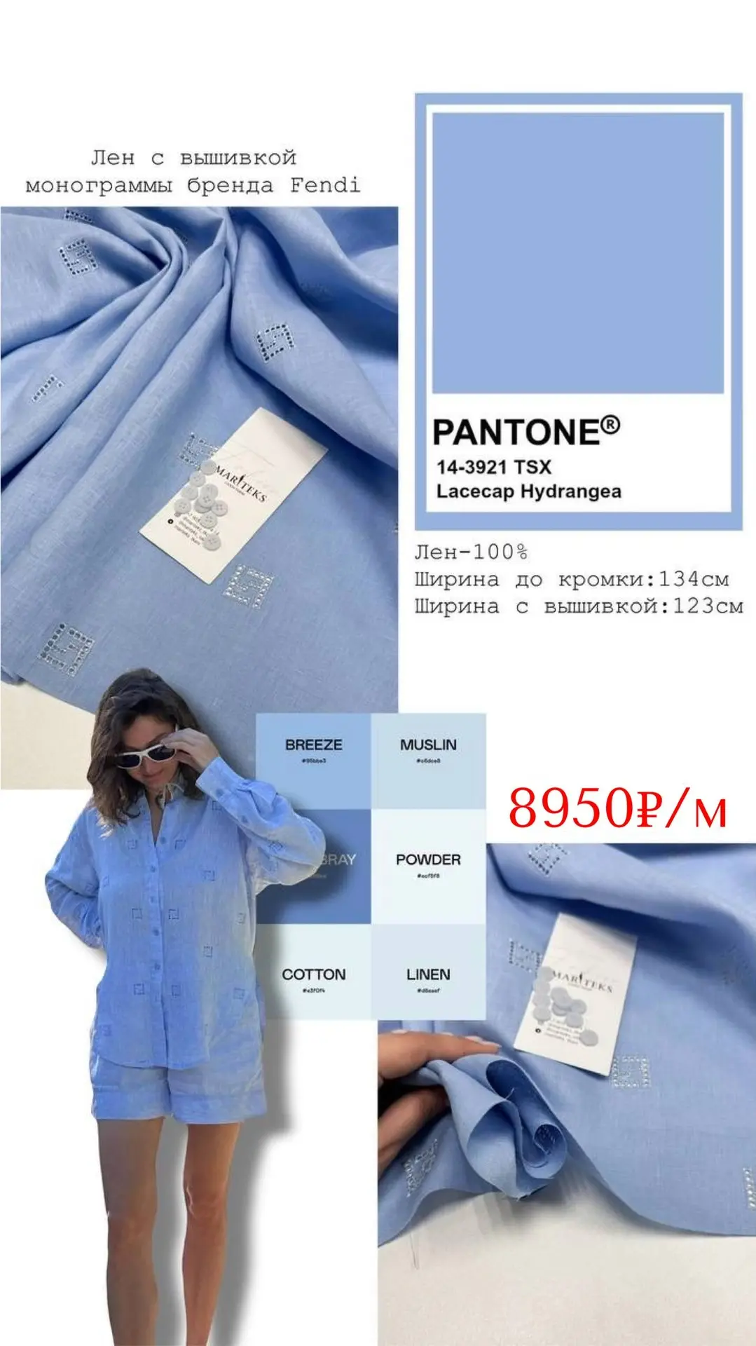 Лен Fendi с вышивкой и однотонный лен Fendi.