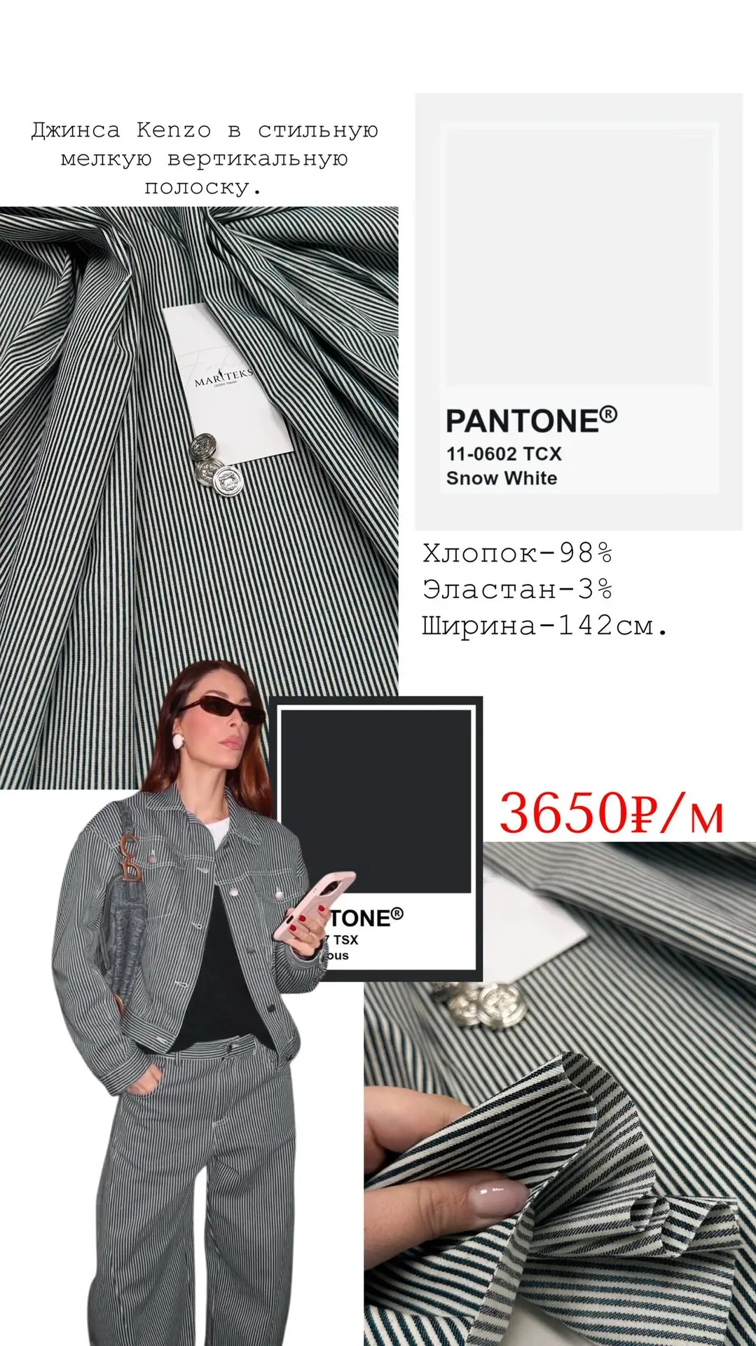 Джинса Kenzo в стильную мелкую вертикальную полоску. На джинсы, на джинсовку, на облегченный тренч, на юбку или на пиджак 🔥