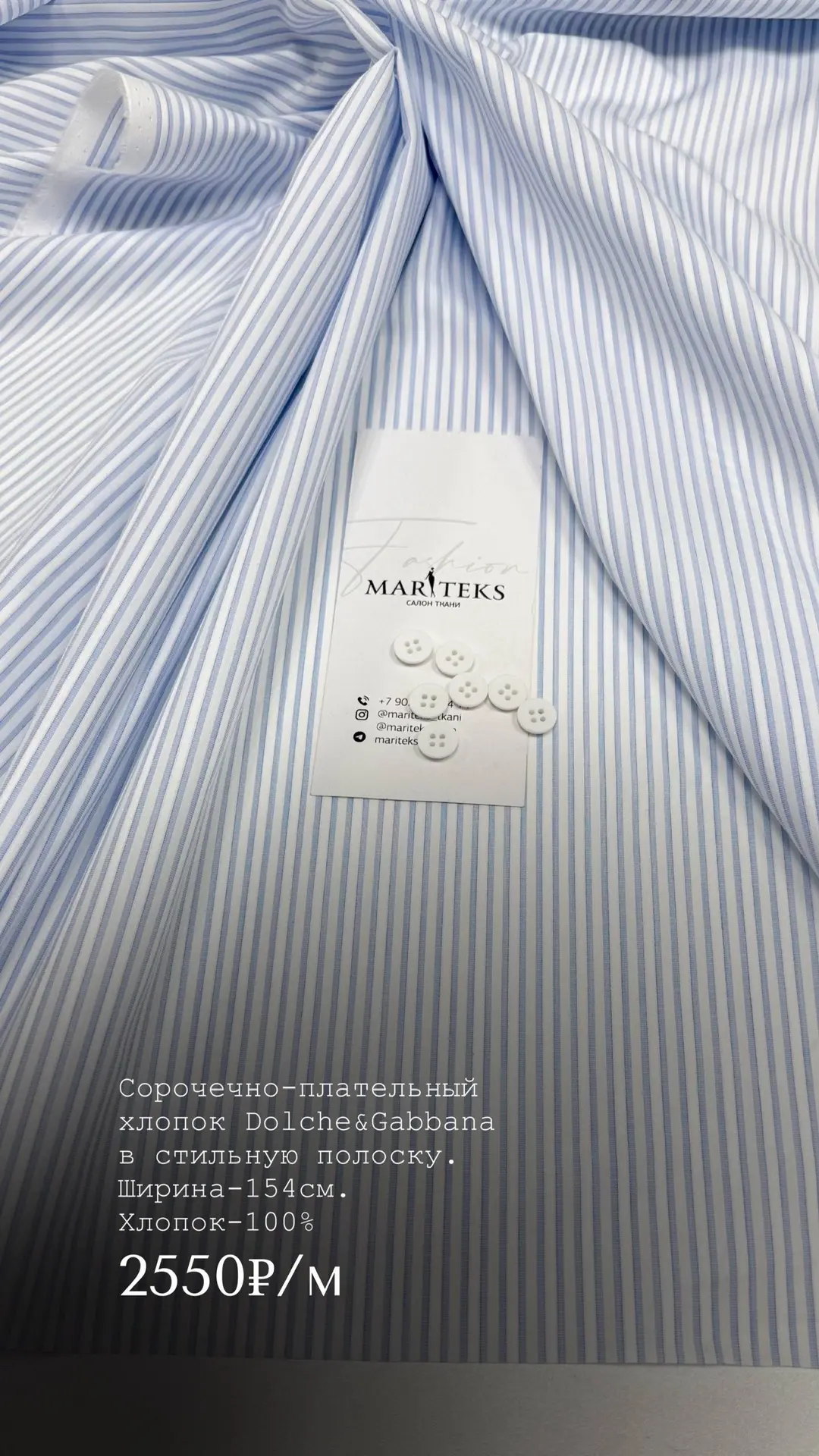 Сорочечно-плательный хлопок Dolche&Gabbana в стильную полоску. На рубашку, на платье, на юбку или на шорты 🔥
