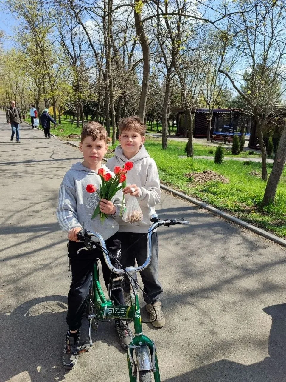 Мальчишка повернулся в мою сторону и я вижу,что у мальчишек букетики тюльпанов в руках, хором говорят -Христос Воскрес! 🙏 и протягивает мне один цветочек.Говорит с праздником вас,хорошего дня. На вопрос где вы взяли столько цветов, ответили хором ,купили вон у той бабушки показывая на бабушку у магазина которая продаёт цветы. Двое мальчишек бойкие, шустрые догоняли всех прохожих и каждому вручали по тюльпанчику, поздравляли с праздником и желали хорошего дня.Реакция людей на бойкое поздравление была у всех одинаковая, сначала удивление, потом улыбки. С ними была ещё девочка, но очень стеснительная, фотографироваться не захотела, смущаясь отошла в сторону. Хочу сказать родителям спасибо за воспитание, детям спасибо за добро и за лучик позитива которым они делились»