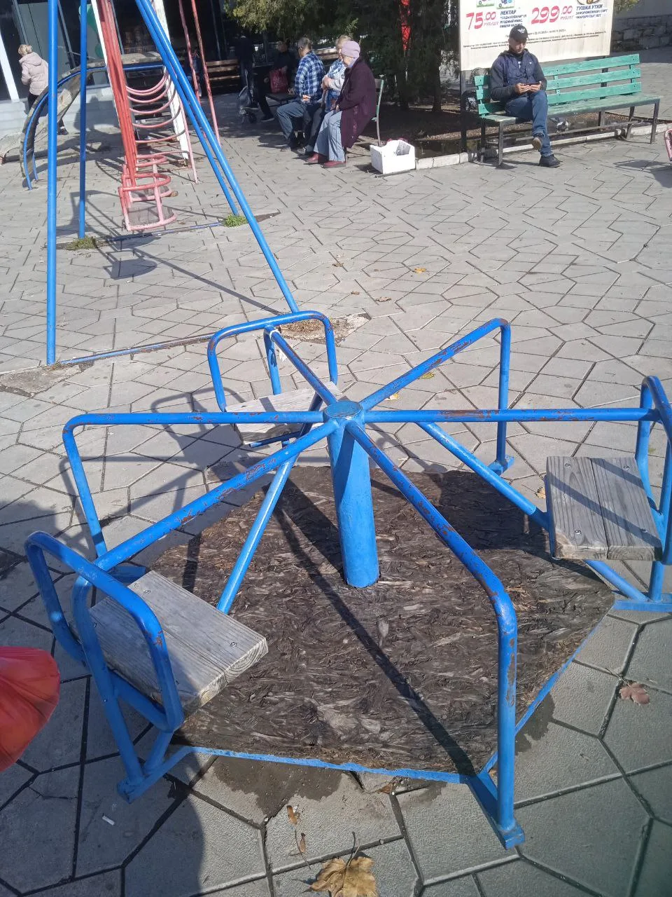 Спрашивают как кататься на такой карусели? Металлические перегородки поперёк сидушки