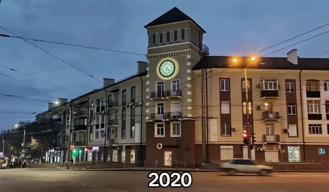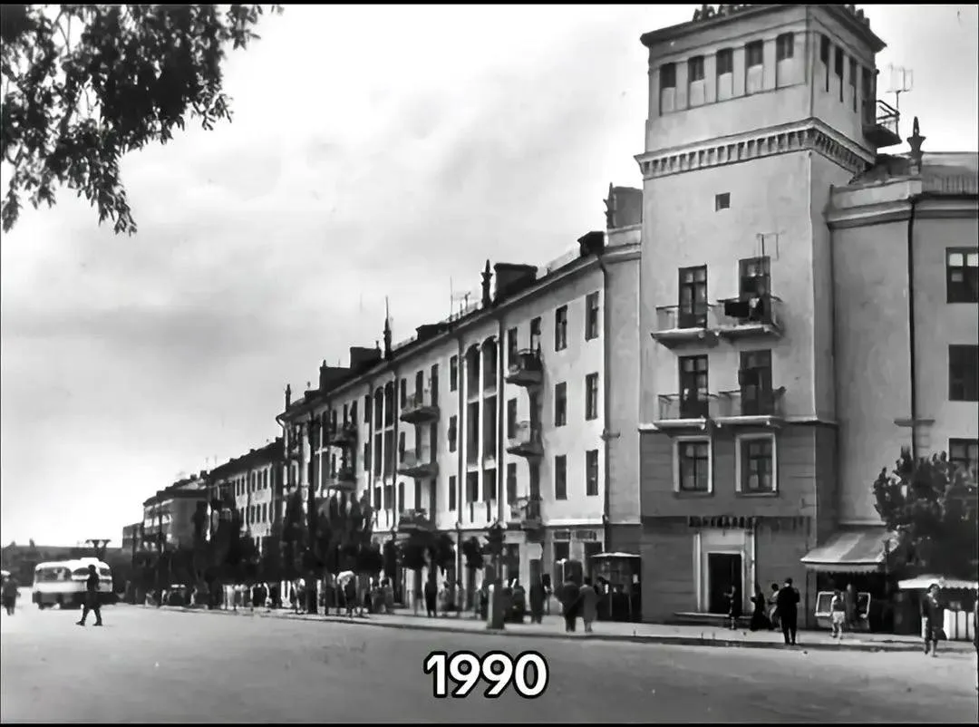 Дом с часами в разные годы. Но на первом фото скорее всего не 1990 год а еще раньше.