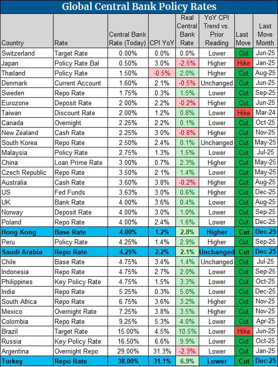 последними понизили ставки ЦБ Гонконга, С.Аравии, Турции