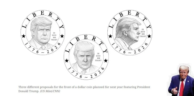 Администрация Трампа планирует выпустить в следующем году монету номиналом 1 доллар с изображением Трампа в рамках празднования 250-летия Америки. -- CNN