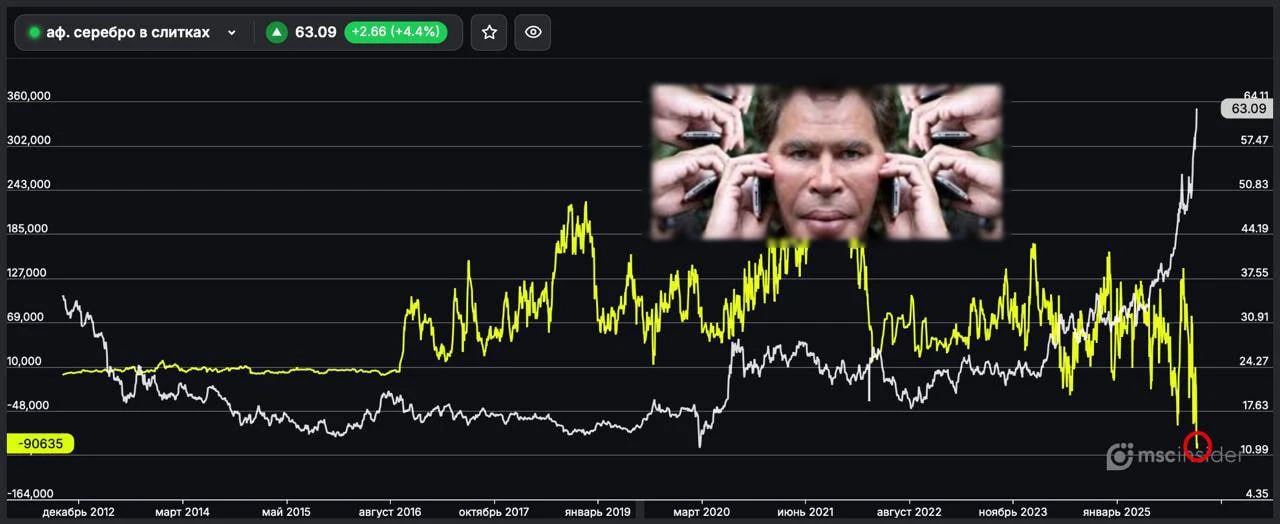 Серебро продолжает обновлять рекорды. Физики на Мосбирже в рекордном шорте во фьючах — данные MSCinsider