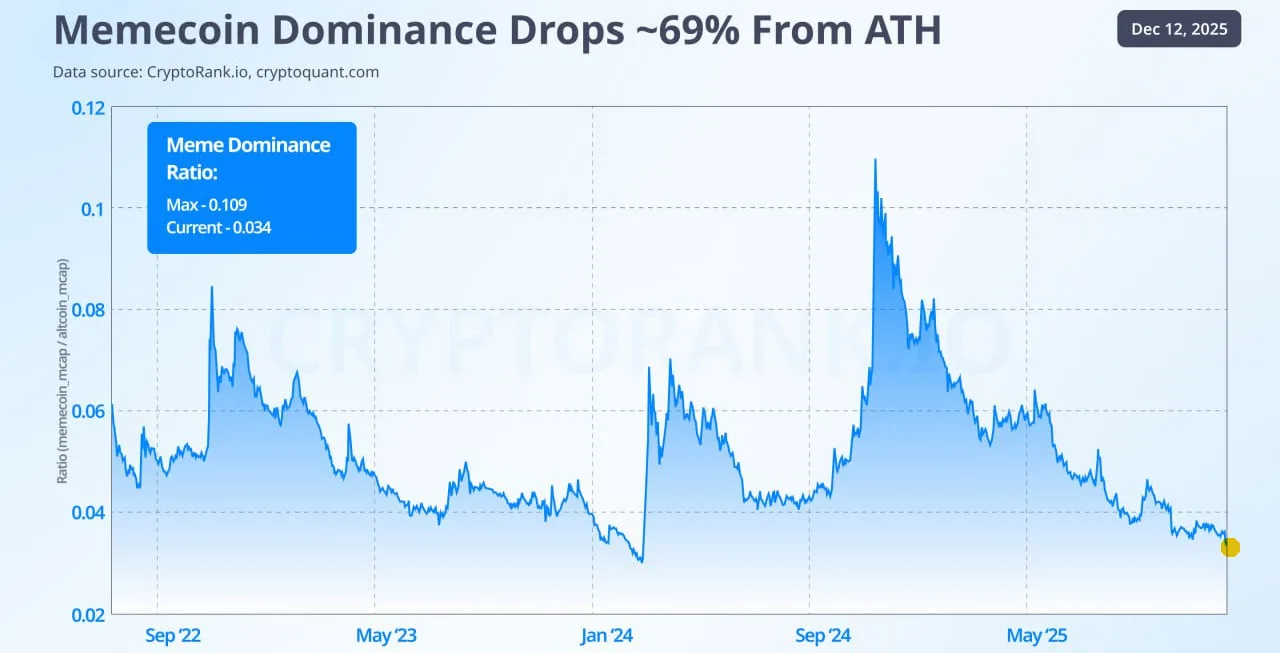 Индекс доминирования мемкоинов упал на 70% от январских хаев — Cryptorank