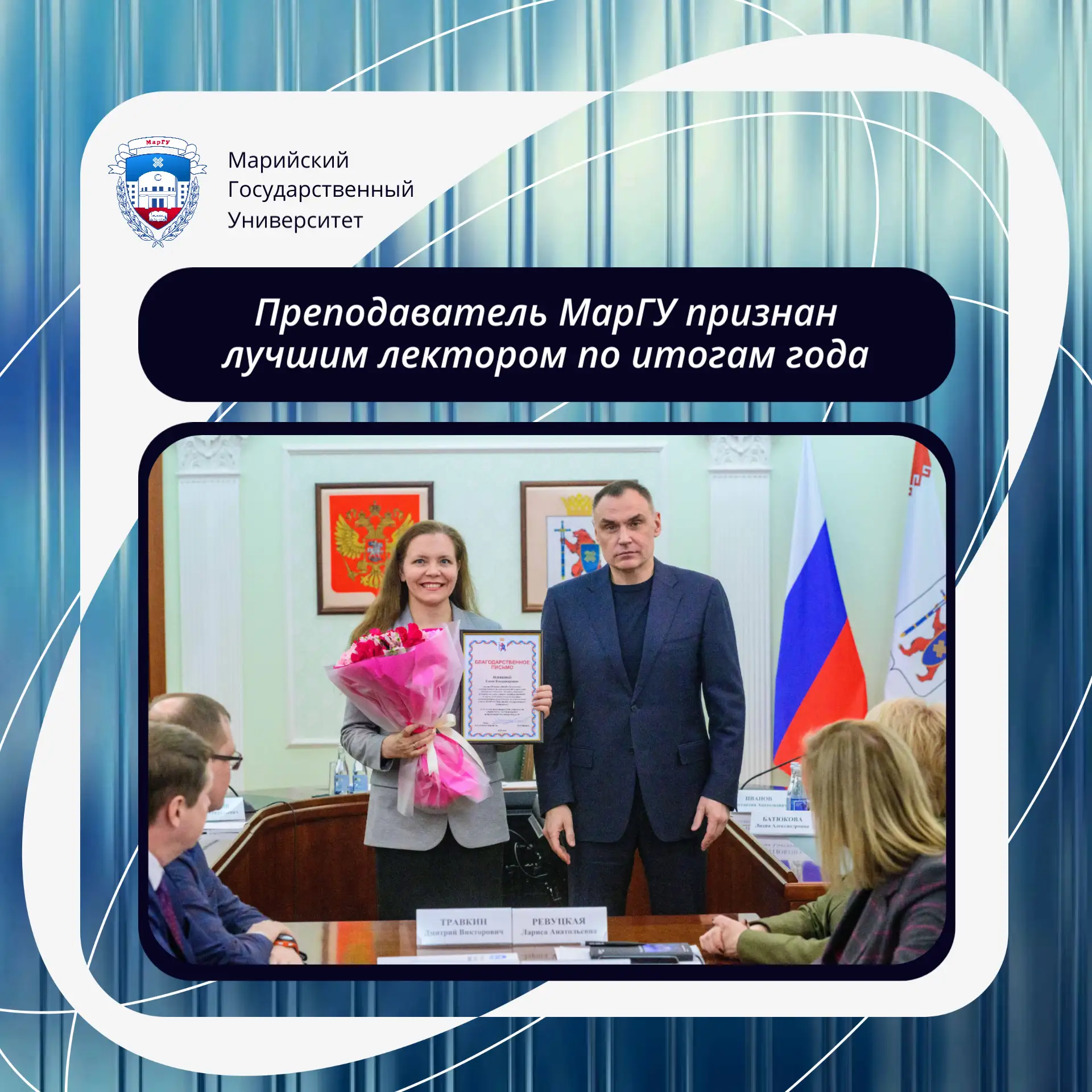🏢 At a meeting of the Supervisory Council of the Mari Regional Branch of the Russian Society «Znanie», chaired by Yuri Viktorovich Zaitsev, Head of the Republic of Mari El, Elena Lezhnina — a lecturer at Mari State University, Candidate of Historical Sciences, and Associate Professor at the Department of World History — was recognised as one of the top lecturers of the year.