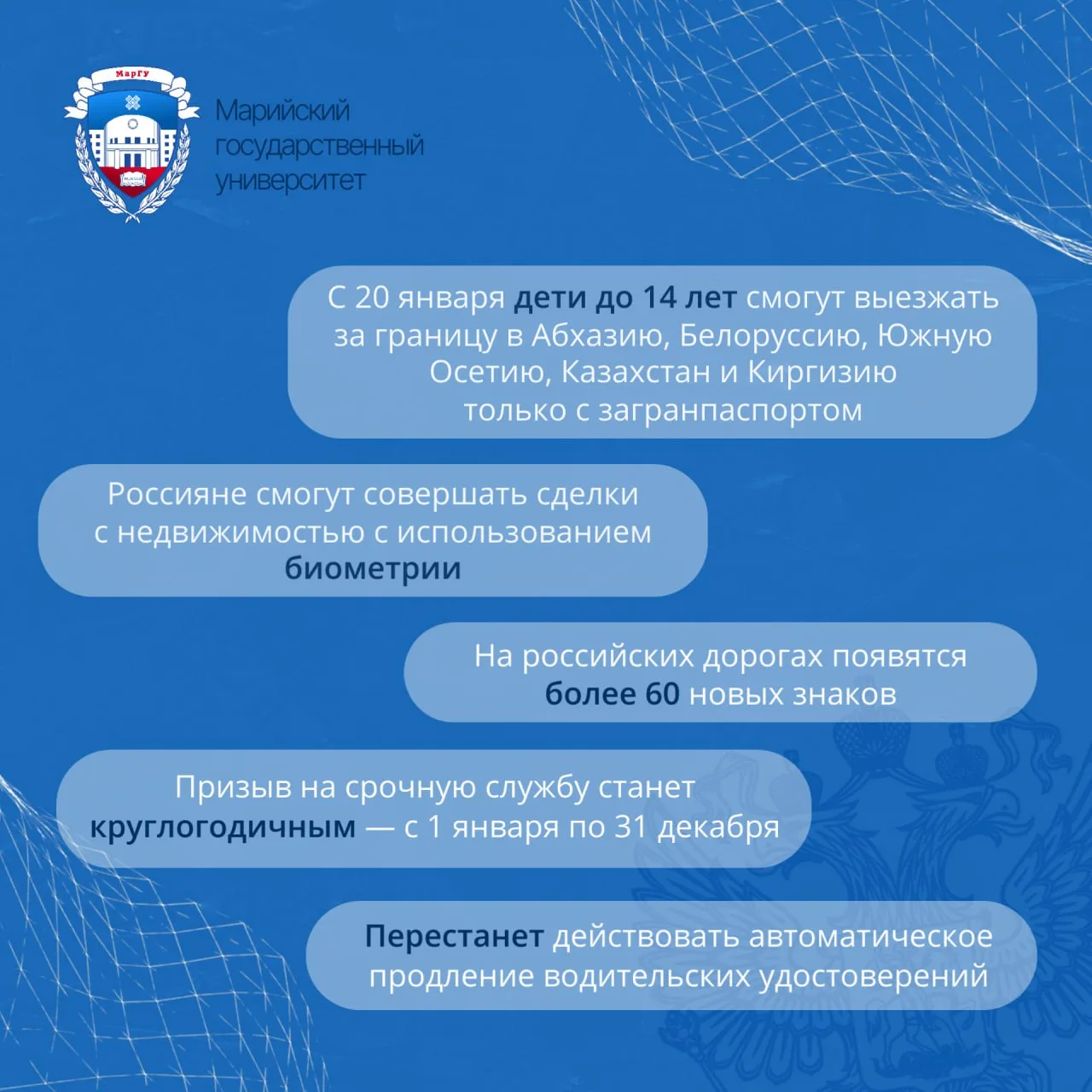 ➡️ A lecture titled "Entering the Second Quarter of the 21st Century: What the Coming Year Has in Store for Us" was held at MarSU under the auspices of the Russian "Znanie" Society.