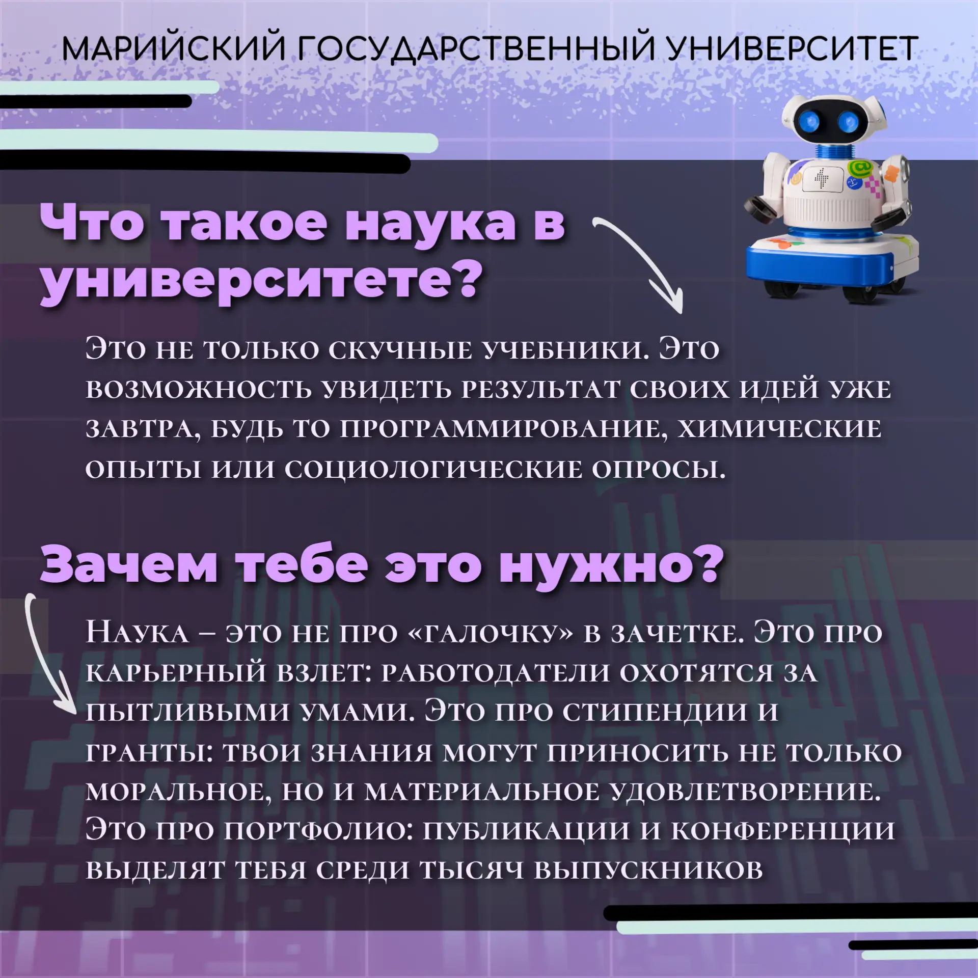 We answer these questions in the #СтуднаукаМарГУ section. In our event catalog, you can find: