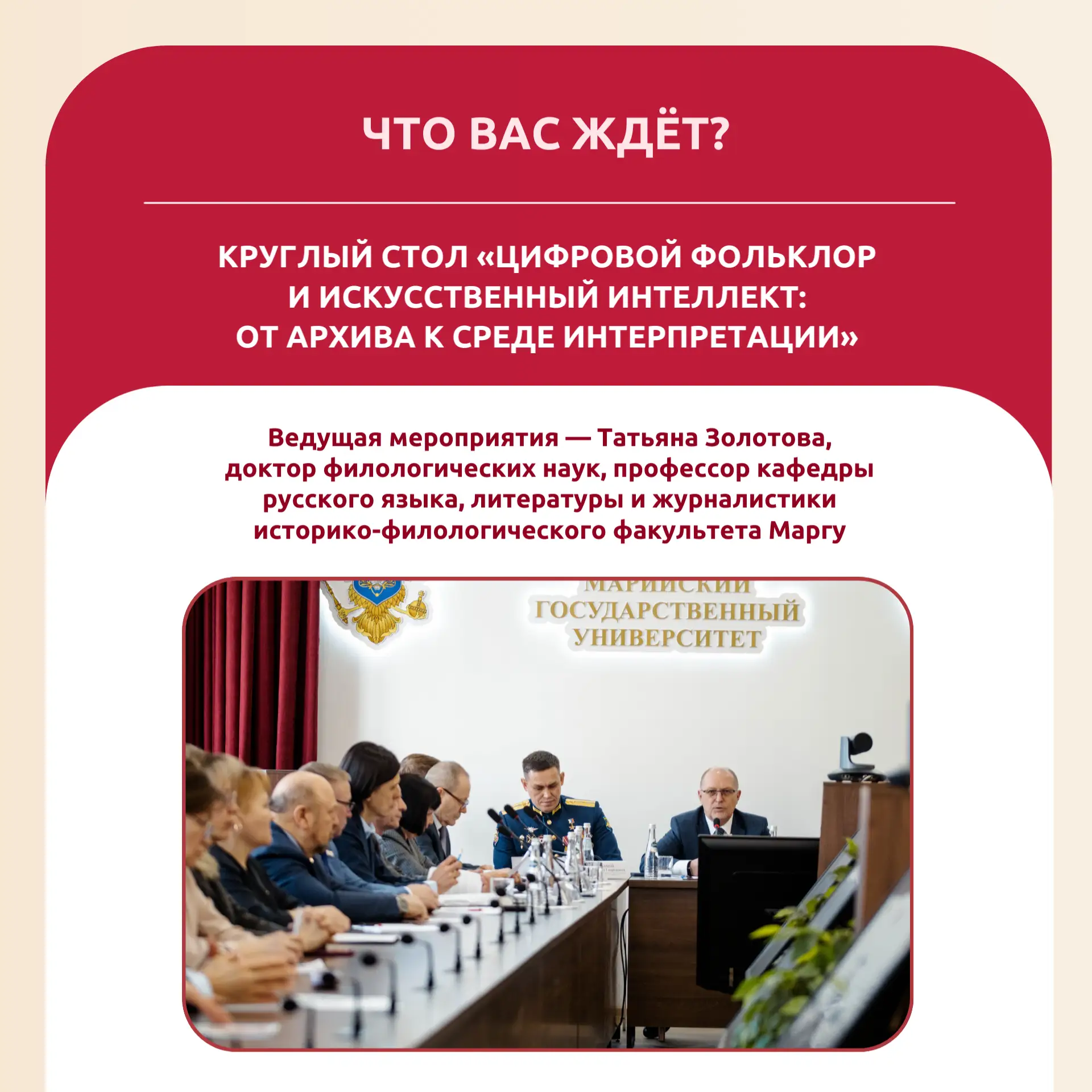 📝 В МарГУ состоялось заседание круглого стола, посвящённого актуальным вопросам развития современного фольклорного архива. В обсуждении приняли участие профессиональные фольклористы, филологи, специалисты в области IT-технологий, а также студенты, магистранты и аспиранты МарГУ. Модераторами выступили профессора Т.А. Золотова и Л.Х. Давлетшина.