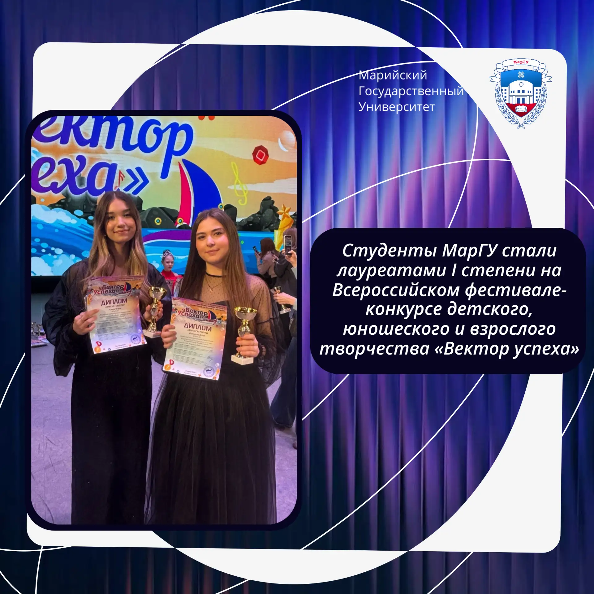 🎤 В Йошкар-Оле прошел Всероссийский фестиваль-конкурс детского, юношеского и взрослого творчества «Вектор успеха», где наши студентки направления подготовки «Музыкальное искусство эстрады» ИНКиМК Шобурова Юлия и Ускова Мария покорили всех своим выступлением и стали лауреатами 1 степени в своих возрастных номинациях.