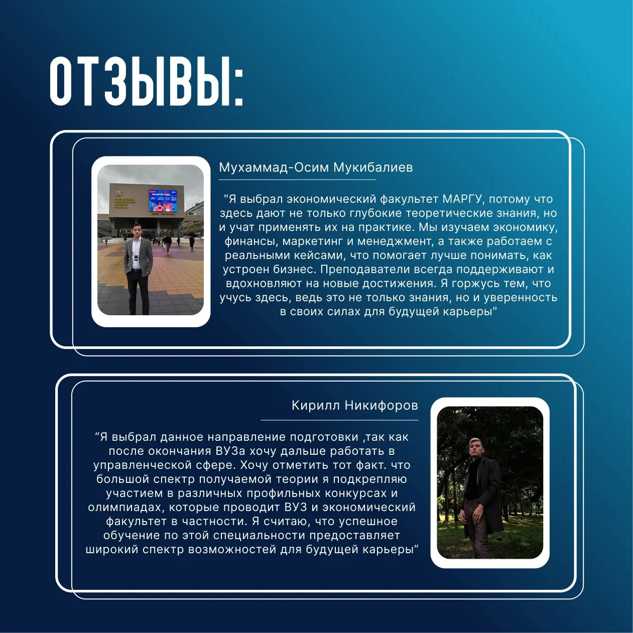 🌐 In the framework of our #ПоступайвМарГУ series, we continue to introduce the programs of the Faculty of Economics!