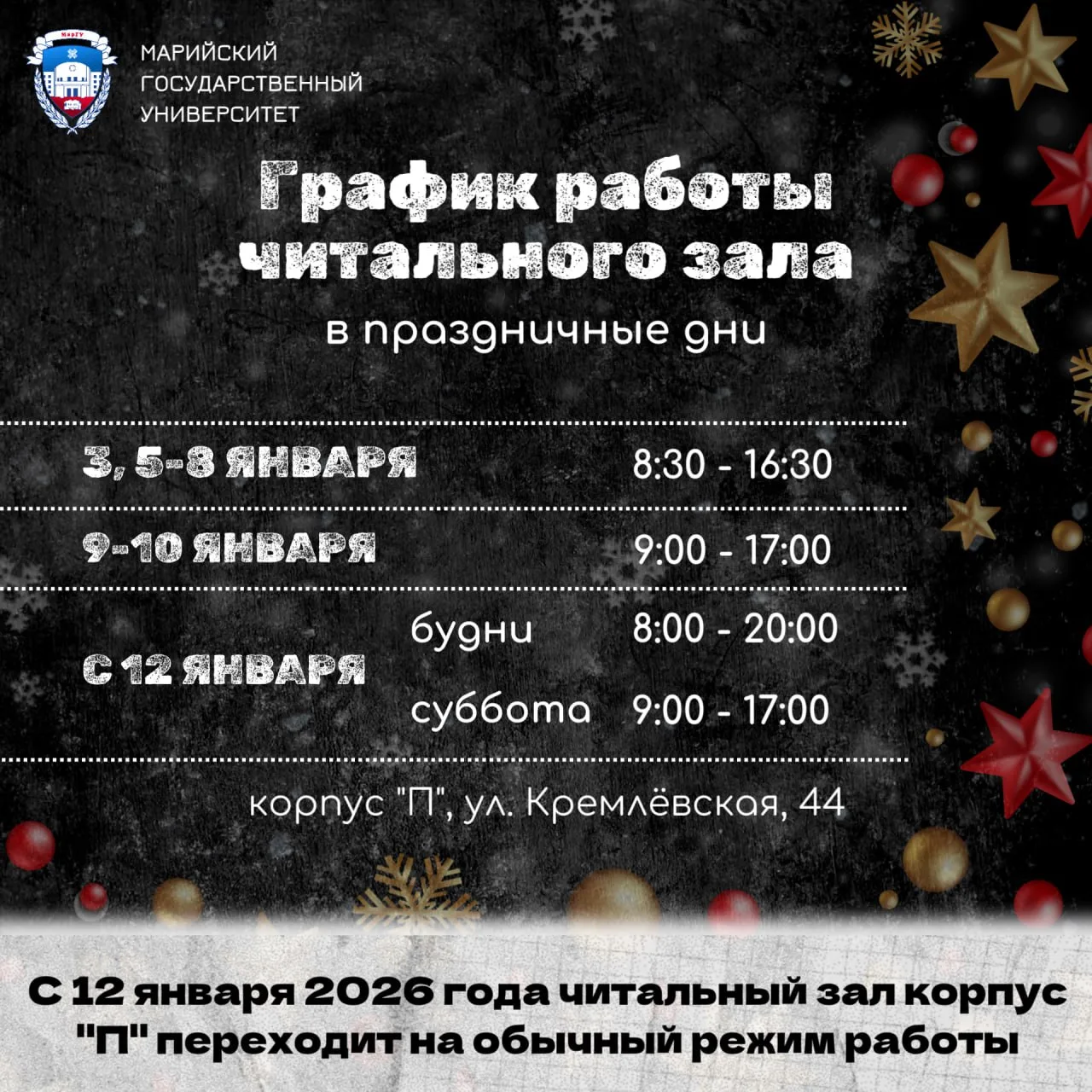 📚 Reading Room Schedule for the New Year Holidays.