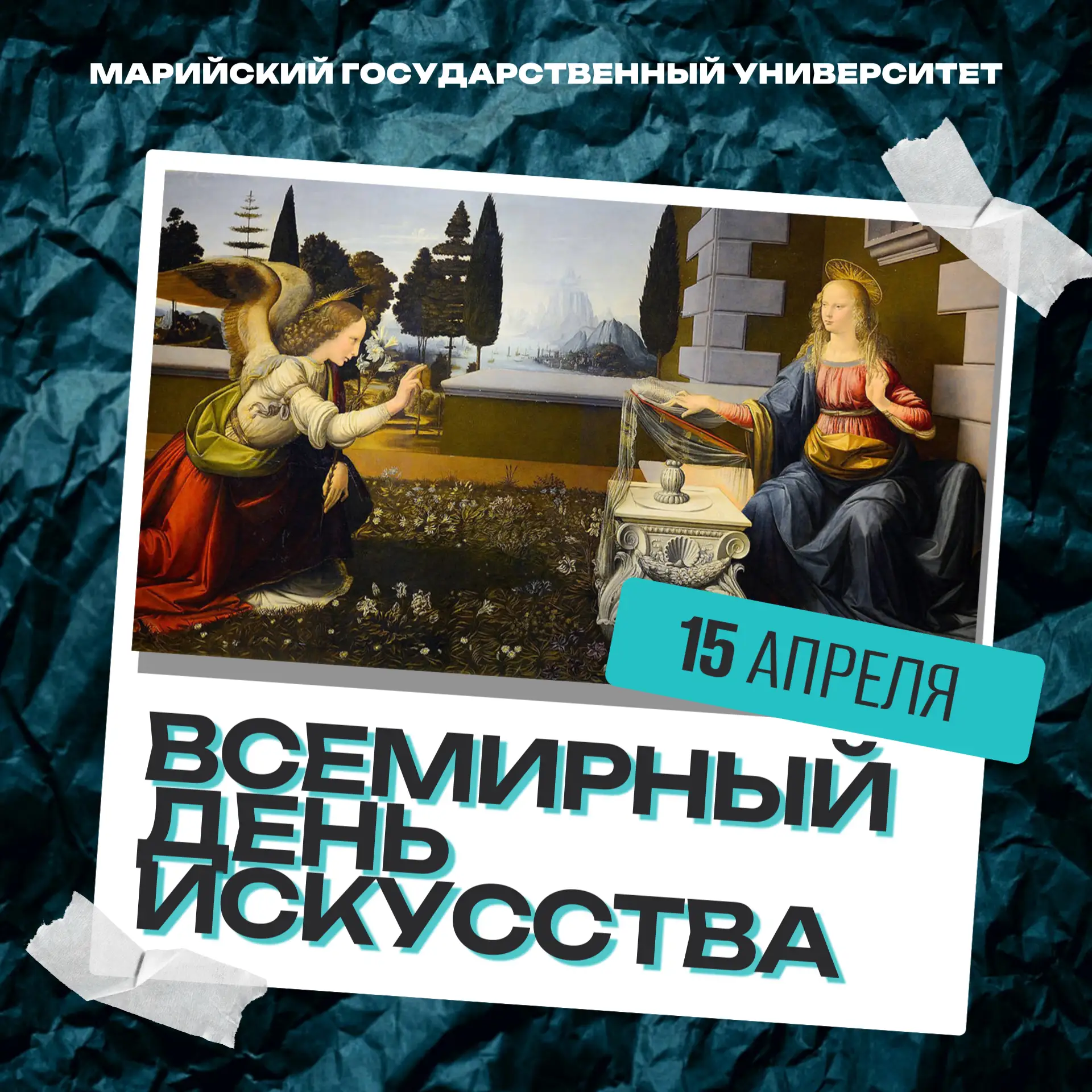 🎨 На карточке не случайно расположен шедевр искусства «Благовещение» за авторством Леонардо да Винчи. Именно 15 апреля творец появился на свет, а в 2012 году это дату провозгласили Всемирным днём искусства.