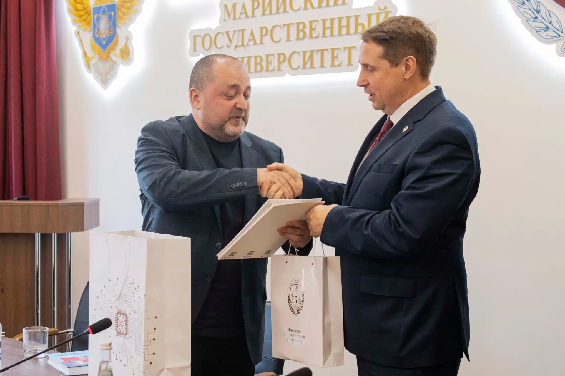 ✅ На встрече присутствовали ректор МарГУ Михаил Швецов, студенты и преподаватели, а также специальный гость — Николай Любимов, заместитель министра культуры, печати и по делам национальностей Республики Марий Эл, выпускник ИНКиМК МарГУ.